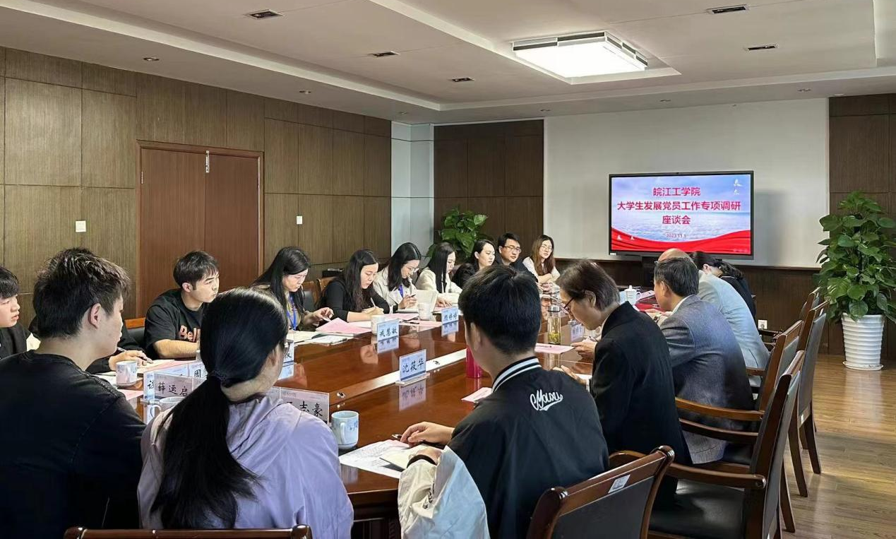 为进一步做好发展党员工作,根据安徽省委教育工委《关于开展在大学生中发展党员工作专项调研的工作方案》及相关文件要求,11月1日,我校在霍里山校区行政楼404会议室召开大学生发展党员工作专项调研座谈会。安徽师范大学调研组领导,皖江工学院党委副书记孙良,党务部部长沈筱华,水利工程学院、机械工程学院、管理学院组织员、学生党支部书记代表、新发展学生党员代表、积极分子代表出席此次会议。本次座谈会由党委副书记孙良主持。