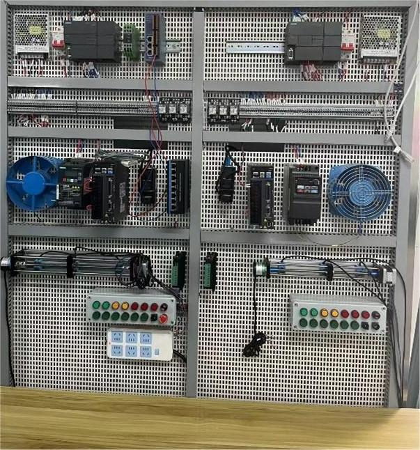 参观的首站是 PLC 自动化应用实训室。踏入实训室的那一刻,先进的设备和模拟生产线立即吸引了众人的目光。实训室内摆放着最新的 PLC 控制器、传感器、执行器以及各类工业自动化组件,仿佛一个小型的现代化工厂车间。