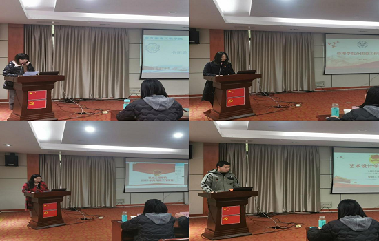 水利工程学院土木工程学院、电气信息工程学院、机械工程学院、财经学院、管理学院、艺术设计学院分团委书记就2021年前工作情况进行现场述职。述职人员围绕强化思想政治引领工作情况;加强团的基层建设情况;落实全面从严治团,推动改革情况;围绕学校党政中心、提升大局贡献度工作开展情况等方面,介绍2021年重点工作完成情况,工作中存在的困难、问题、改进措施及计划。与会人员就述职情况进行评分。