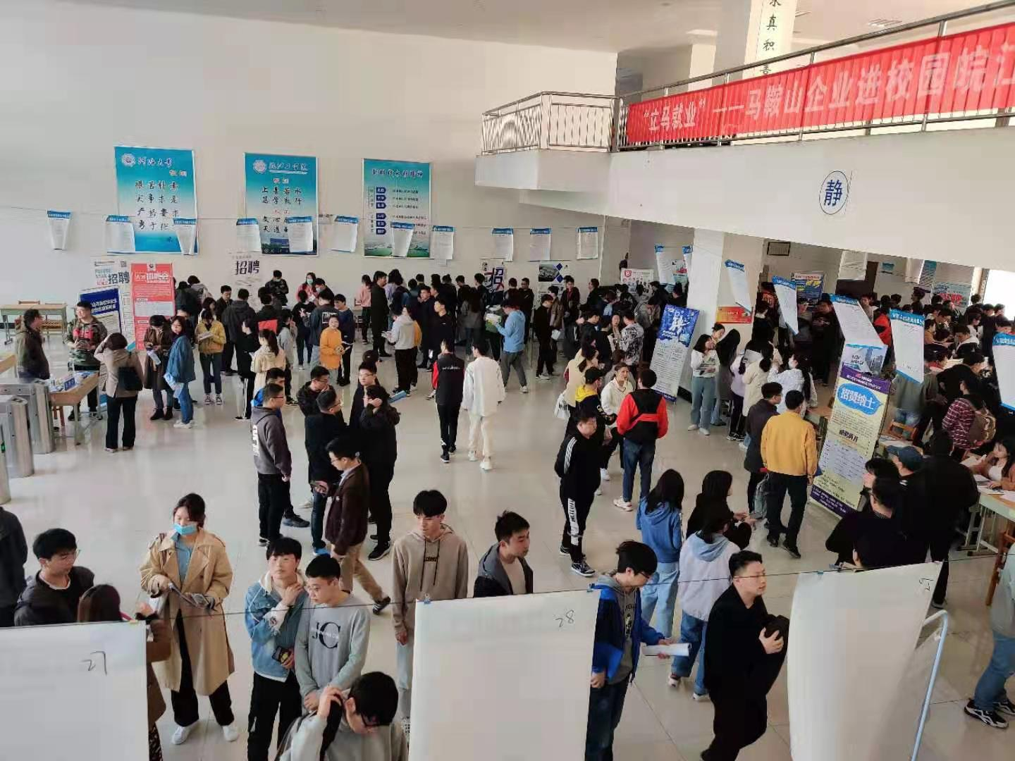 4月9日,马鞍山、湖州长兴人才市场专场招聘会在我校图书馆二楼举行。此次招聘会参会企业覆盖安徽省、浙江省湖州市的大部分区域, 安徽科达机电有限公司、马鞍山仪达空调有限公司、上海安装工程有限公司、浙江天能资源循环科技有限公司、中电能(安徽)电力设计院有限公司浙江天能电源材料有限公司等120余家用人单位参加了现场招聘,共为毕业生提供了4753个岗位。