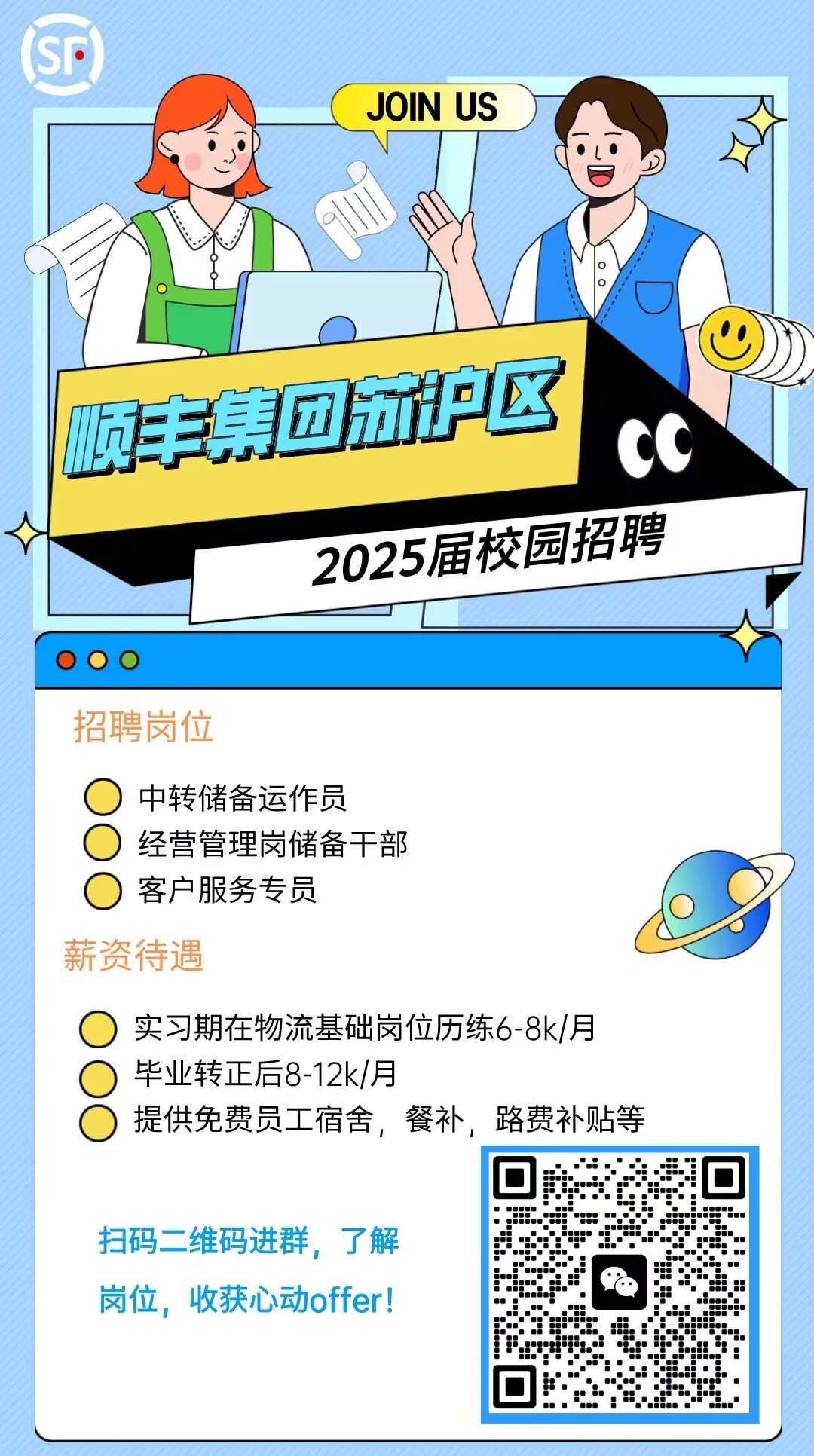 顺丰集团苏沪区2025届实习校招正在进行!顺丰速运是我国最大的快递物流综合服务商,在全球500强排名377名。