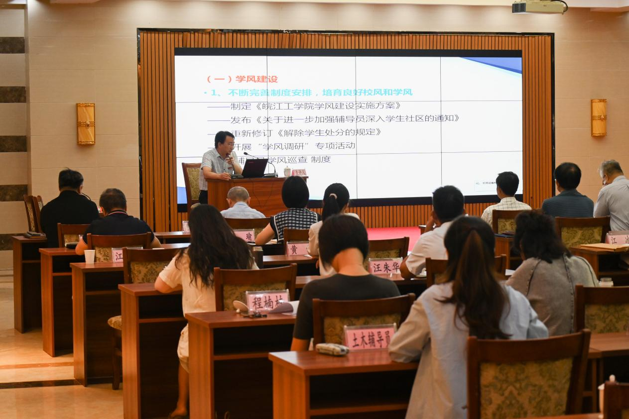 为扎实做好我校本科教学合格评估工作,贯彻“打牢合格评估基础,提升人才培养质量”主题,进一步推进我校合格评估工作,9月2日-3日两天,我校在文海宾馆和霍里山校区图书馆报告厅召开2023年皖江工学院合格评估工作推进会。董事长朱洪高、校党政领导、咨询委领导、中层以上管理干部、各学院学工办主任、教研室主任、教学秘书、各学院(部)辅导员代表、实验室管理员代表参加会议。