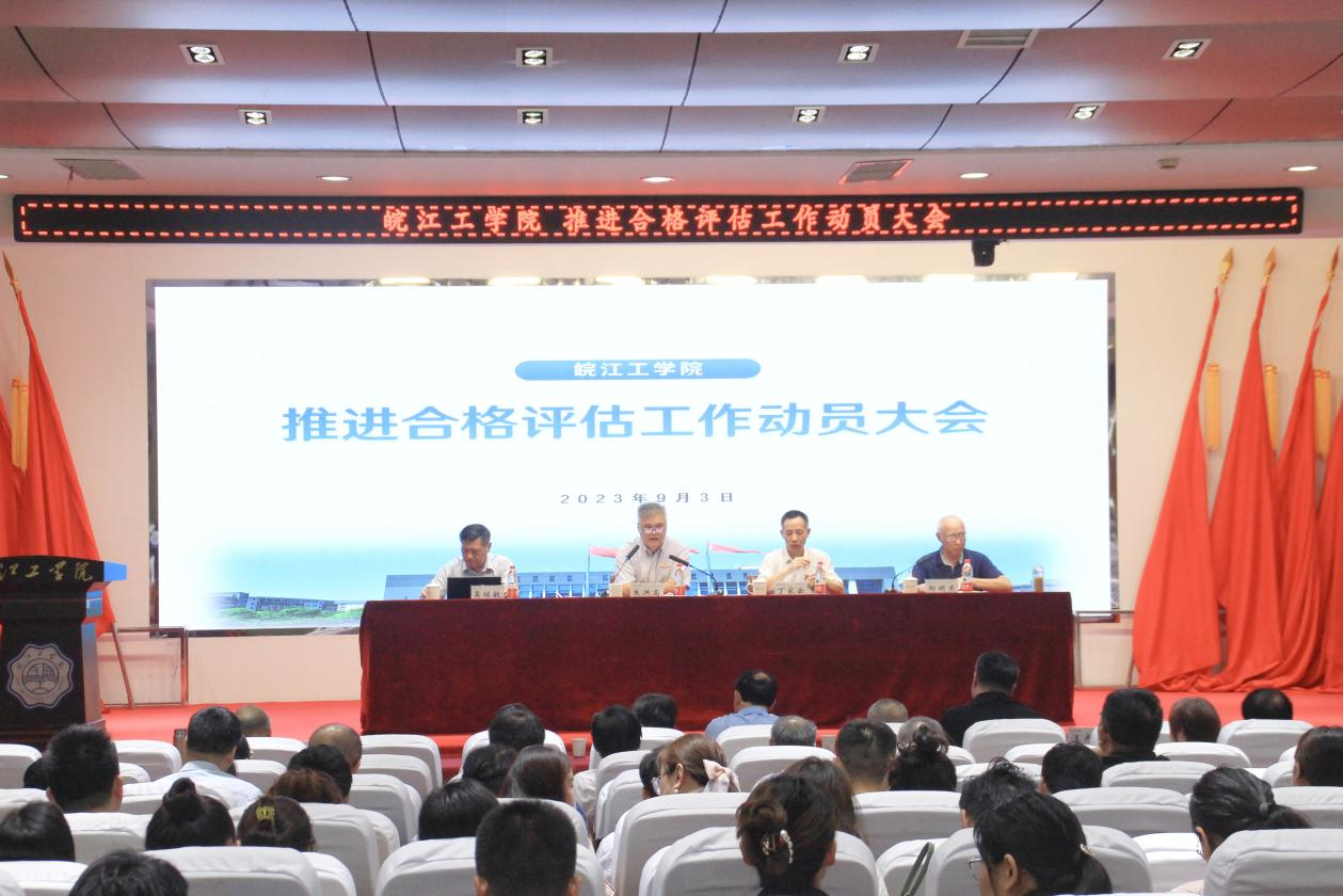 学校将紧紧围绕本科教学合格评估工作,积极落实“以评促建、以评促改、以评促管、评建结合、重在建设”的基本方针,明确责任,狠抓细节,力求实效,做到思想上高度重视,做到人人关心评估,人人参与评估,人人投入评估;行动上,深刻理解指标内涵,主动学习政策文件,“摸清家底”,查缺补漏,对症下药,逐一突破,做到材料到位、建设到位、工作到位。希望以更加饱满的热情,更加务实的作风,更加有力的举措,积极投身到迎评促建工作中去,共同开创皖江工学院更加美好的未来