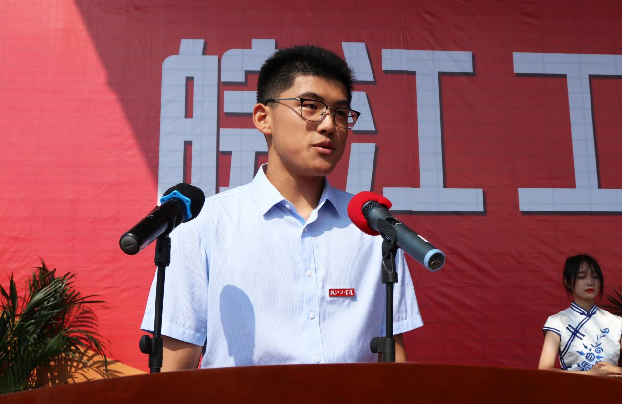 2023级水利水电专业学生王天一作为新生代表发言,表达了对大学生活的憧憬和期待,他表示大学期间要努力学习、在博学多才的良师的指引下,博采众长,开拓创新,严格要求自己,同时遵承“文心励志,天道酬勤”的优良学风,撸起袖子加油干,每一位同学都要活出自我,活出精彩,让过去成为过去,让未来不留遗憾,努力让自己成为一名合格的新时代大学生,将来为国家和社会多做贡献,为中华民族伟大复兴的中国梦贡献自己的力量!