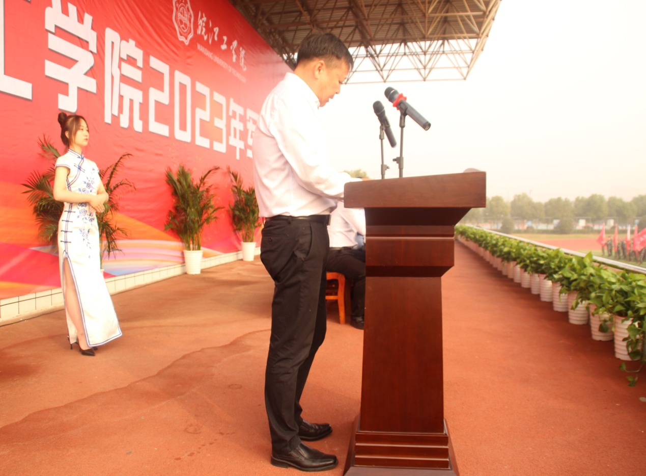 11月5日上午,我校2023级新生军训动员大会在郑蒲港校区田径场举行。党委副书记孙良,副校长侯进元,咨询委副主任张勤、张建民,各二级学院院长及各职能部门负责人出席了此次动员大会。大会由学生工作部常务副部长江春明主持。