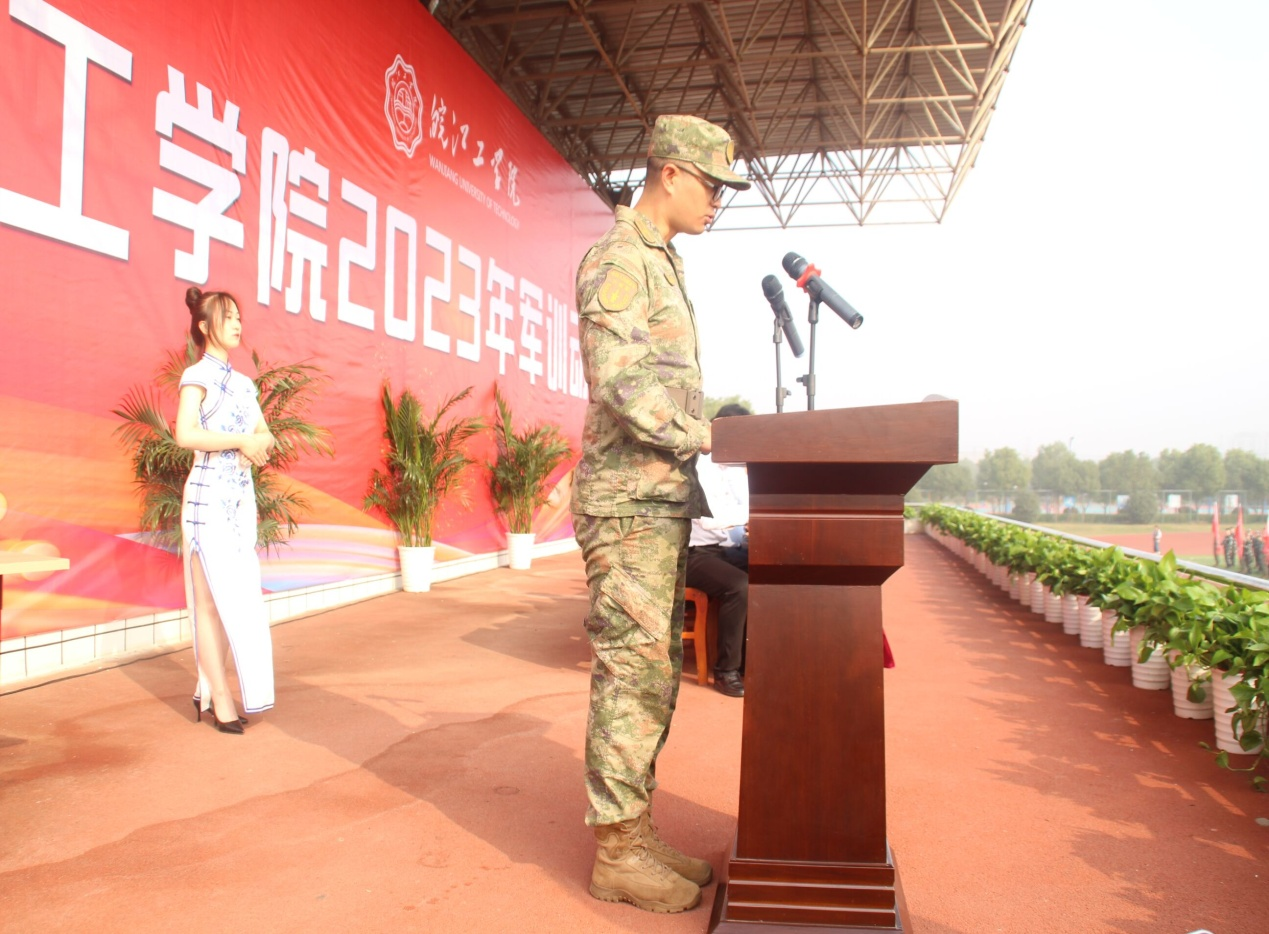 承训部队副营长孟尚向2023级新生表示衷心祝贺。他希望通过军训可以让同学们提高政治思想觉悟、增强集体意识观念、磨炼自我意志、培养吃苦耐劳的精神和国防观念,同时掌握一定的军训知识和军训技能,并养成雷厉风行的军人作风。