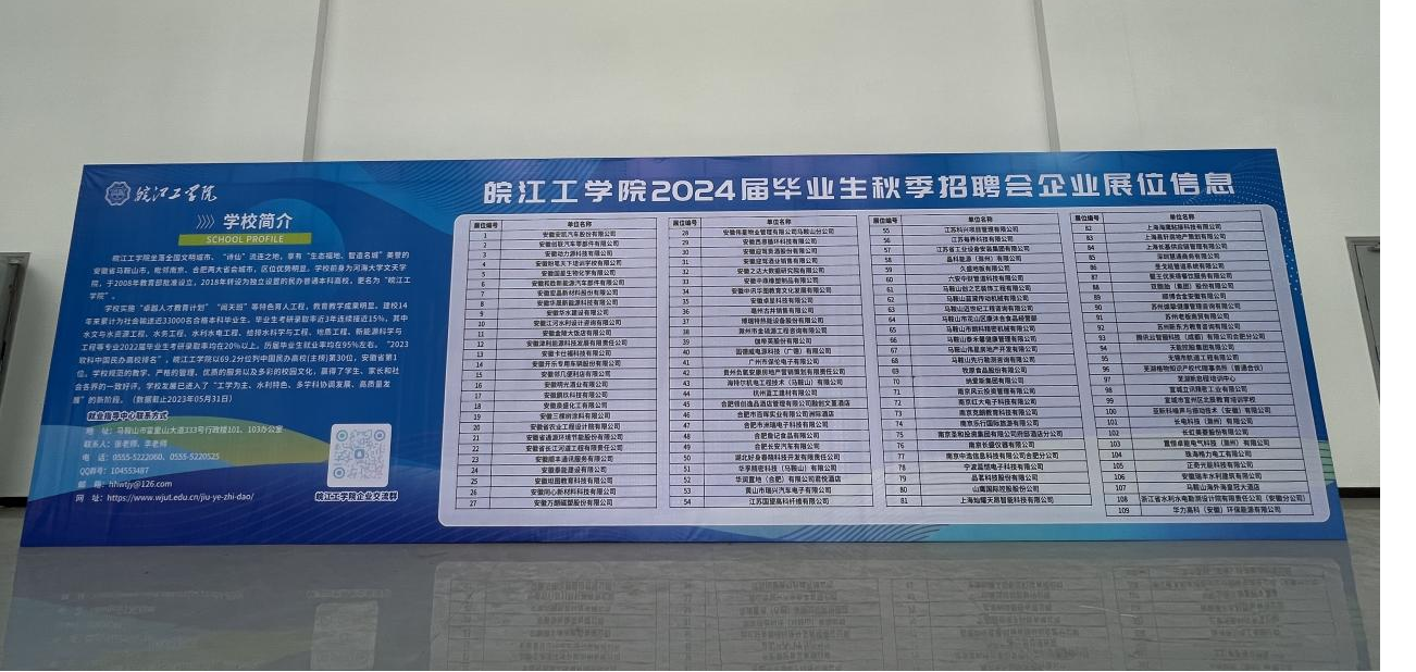 双选会邀请到安徽江河水利设计咨询有限公司、安徽瑞丰水利建筑有限公司、天能控股集团有限公司、江苏省工业设备安装集团有限公司、安徽省长江河道工程有限责任公司等109家用人单位参会,参会企业涉及水利、制造业、建筑业、电力信息传输、软件和信息技术服务业等多个行业领域,基本覆盖了我校所有专业。共计提供岗位1200余个,提供人数需求2500余人,2024届全体毕业生及对接实习岗位的非毕业生同学现场参加了本次双选会。