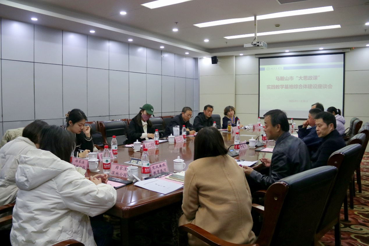 11月30日下午,我校在文海宾馆2号会议室召开马鞍山市“大思政课”实践教学基地综合体建设座谈会。市委宣传部副部长齐道明,第一批“大思政课”实践教学基地各单位负责人,皖江工学院副校长孙良,皖江工学院马克思主义学院党总支书记、常务副院长刘双参加本次座谈会。座谈会由刘双主持。