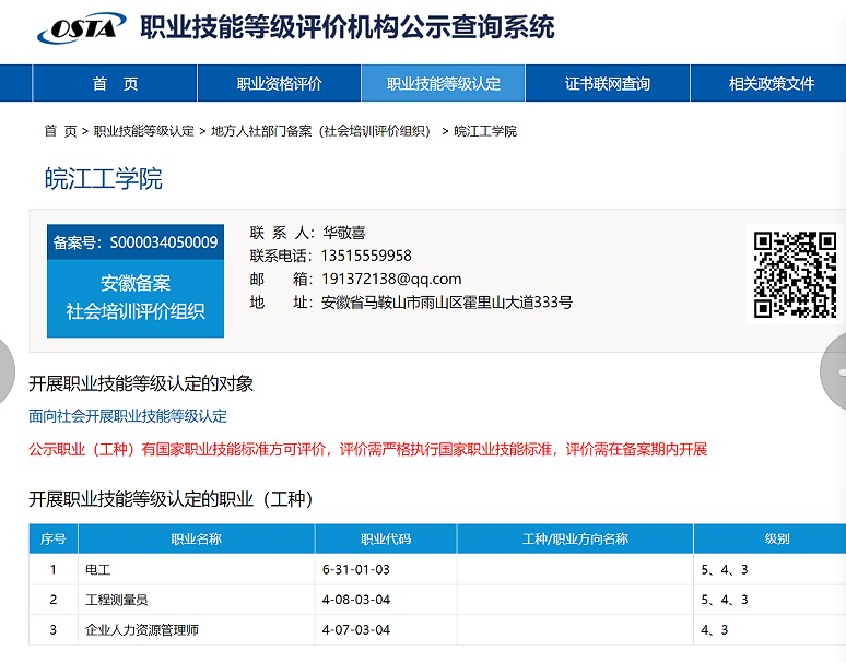 2023年初,在马鞍山市人社局关心指导下,我校继续教育学院积极组建申报,先后制定了职业技能等级评价服务规程、制度和细则,形成申报材料,历时近一年的攻坚克难,终于取得了满意的成果,已具备电工、企业人力资源管理师、工程测量员三个工种的职业技能等级认定资格。据悉,我校是马鞍山市第一所可以开展职业技能等级认定的本科高校。获批职业技能等级认定资格,也是我校落实国家“十四五”职业技能培训规划,拓展职业技能考培体系,提升社会化服务能力,形成“科学化、社会化、多元化”技能人才评价机制的重要举措。