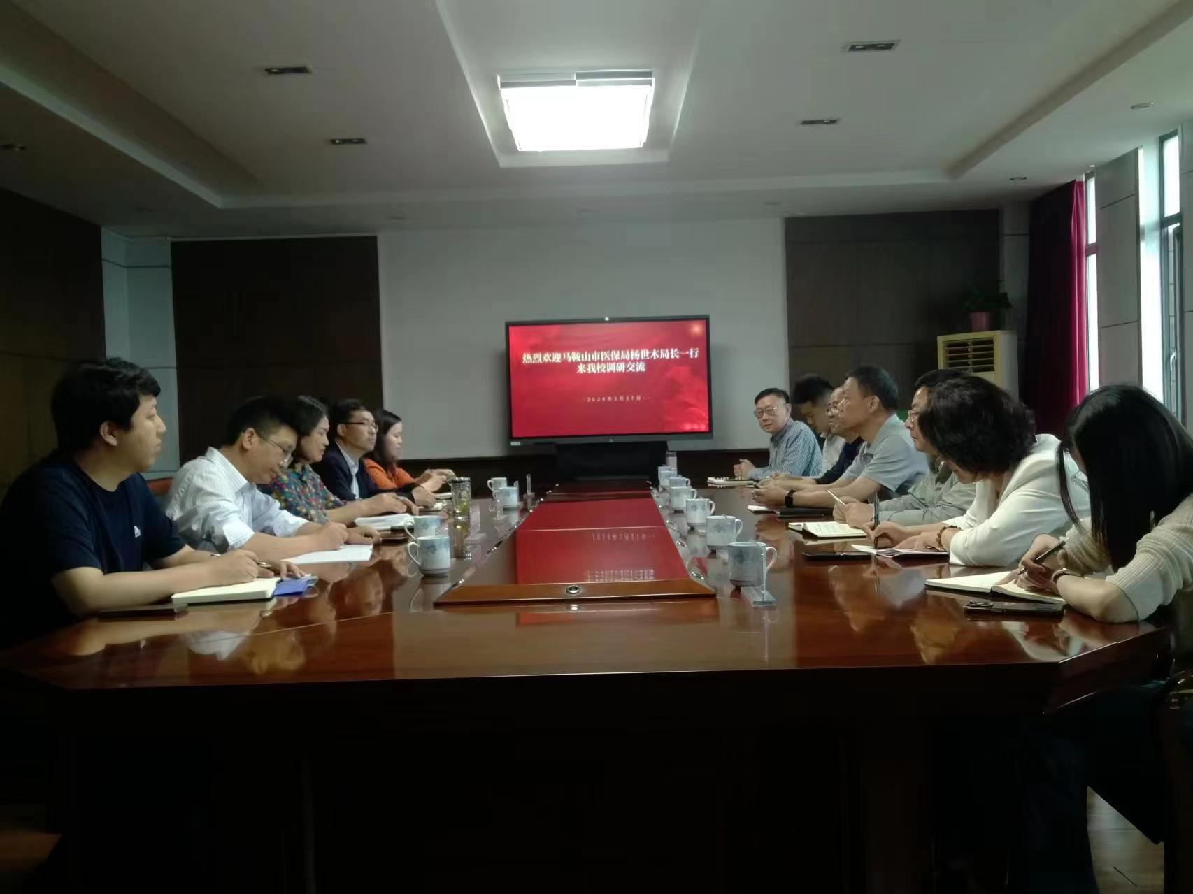 5月27日下午,马鞍山市医保局党组书记、局长杨世木一行7人莅临我校就大学生医保参保缴费工作进行深入调研,我校副校长朱建芬、相关职能部门及二级学院负责人陪同调研。