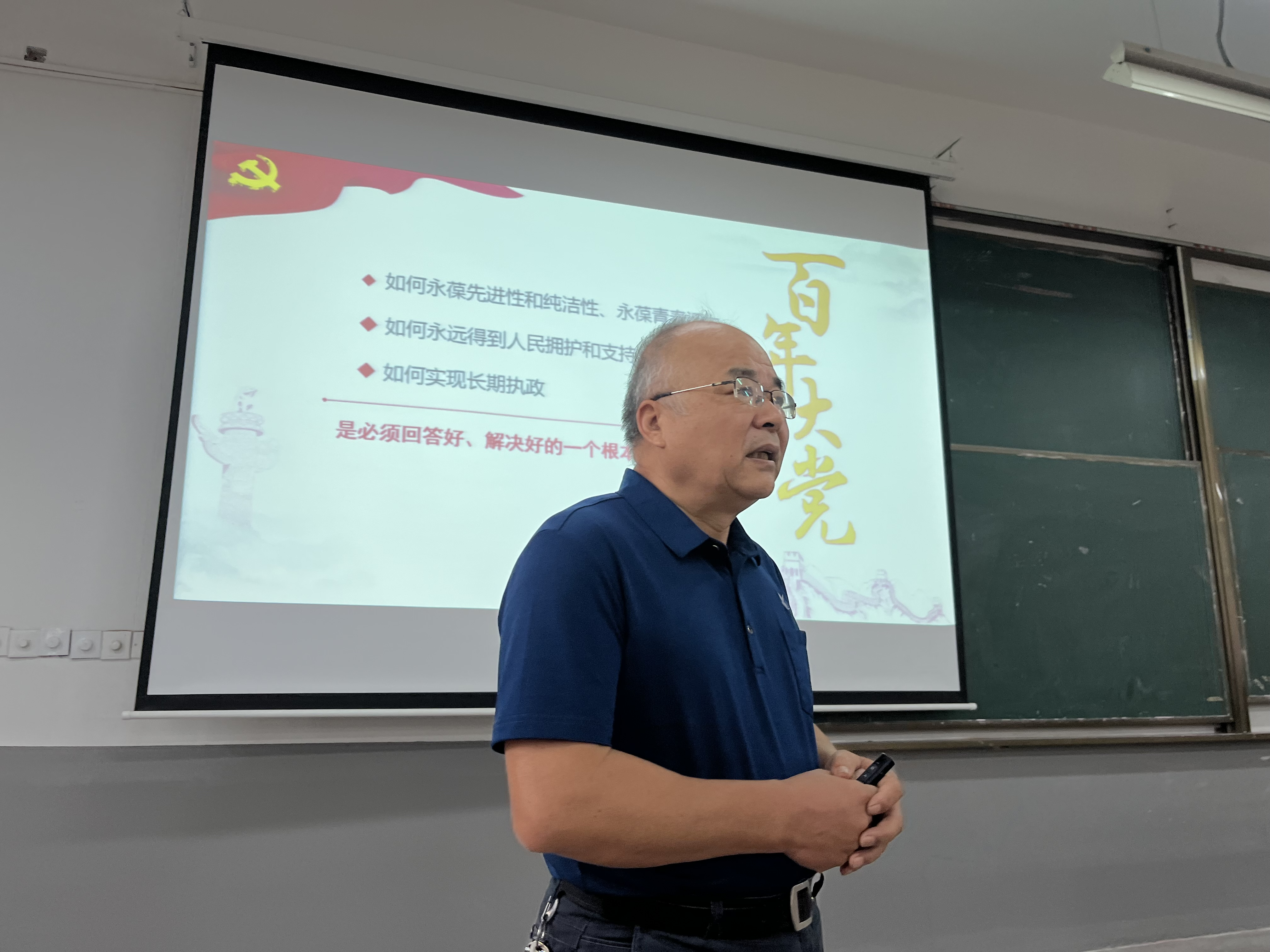 9月28日上午,张勤为20级造价的同学们上了一课以《新时代全面从严治党的伟大实践》为题的思政课。课堂上,他首先讲解了党要管党的主基调,十八大以来的这十年来,我党加强作风建设,推进党风廉政建设和反腐败斗争,社会风气逐步清朗;讲到全方位从严治党时,他强调,勇于自我革命是全面从严治党的新鲜经验,是党百年奋斗培育的鲜明品格,要持续改进作风,坚持不懈把全面从严治党向纵深推进。