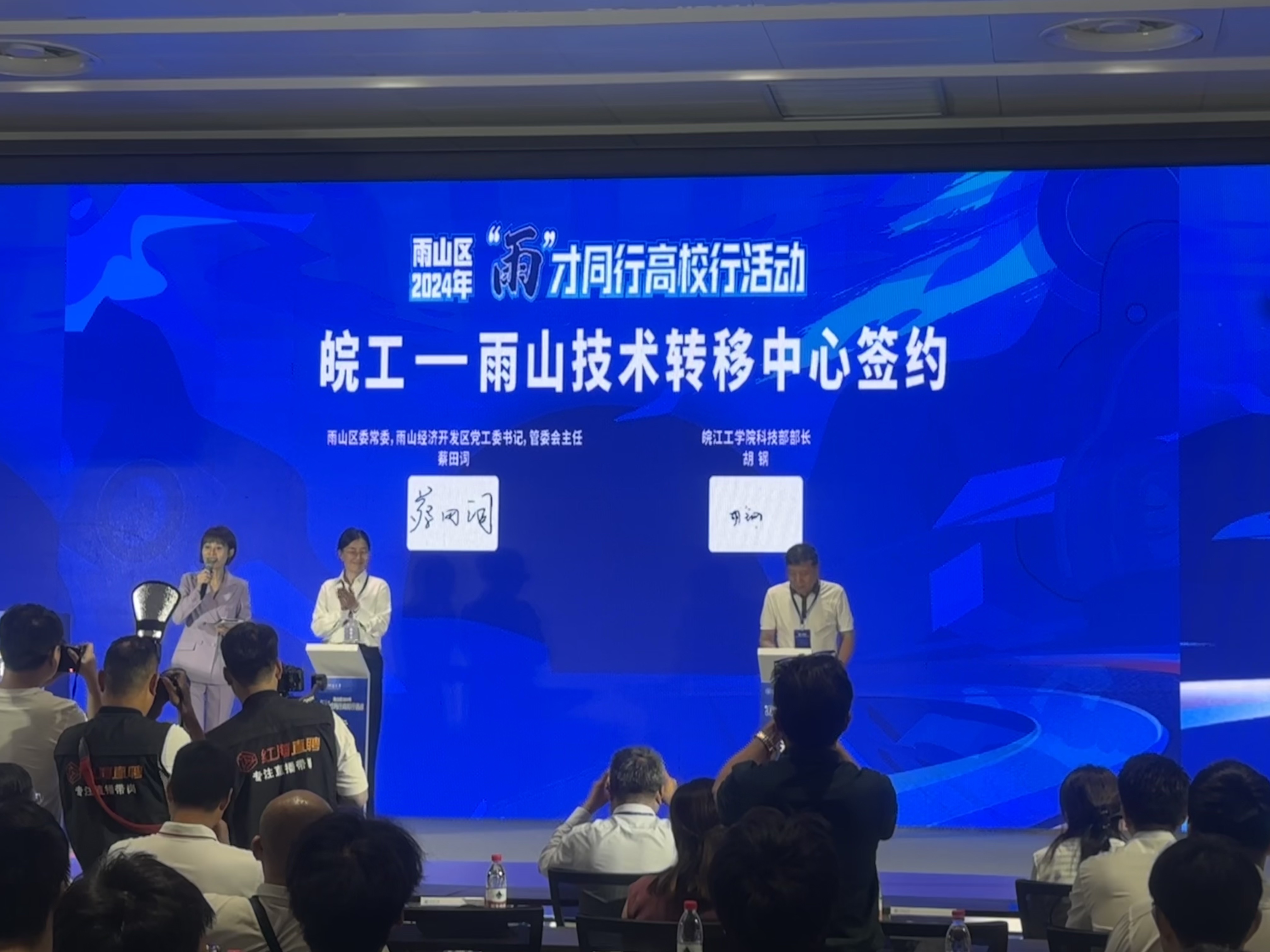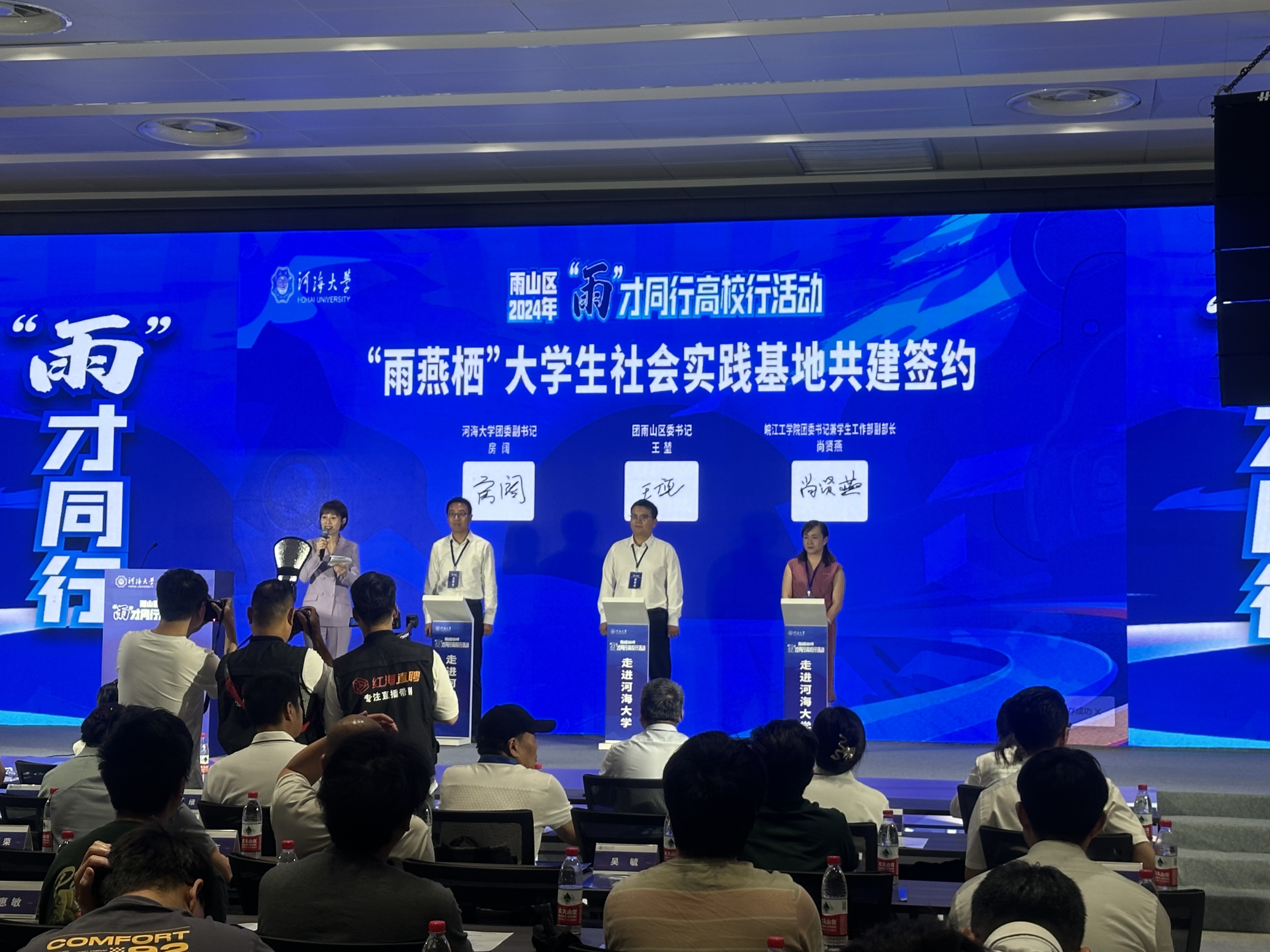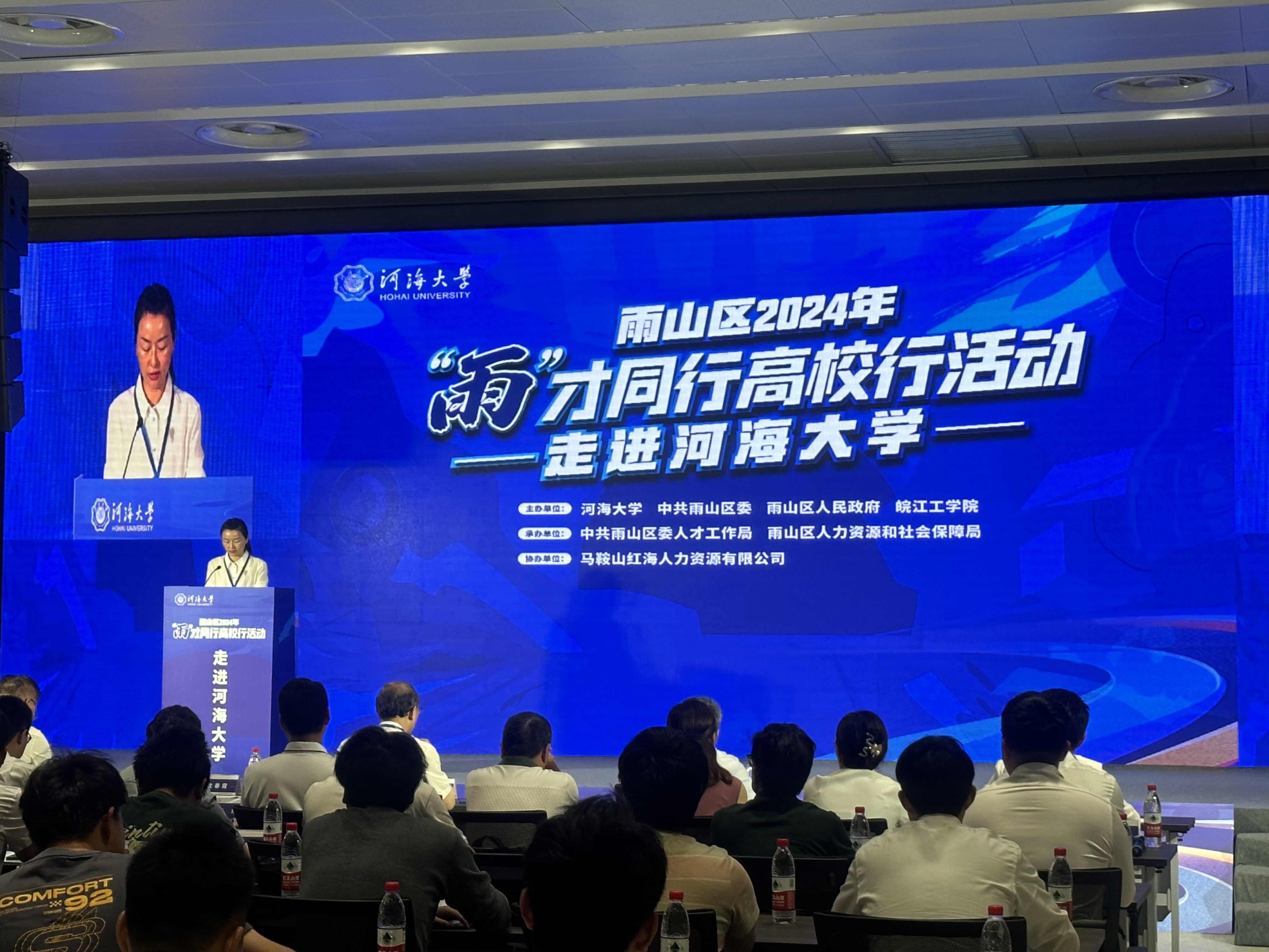 雨山区委办主任陈聪颖,雨山区委编办副主任(主持工作)程希,雨山区人社局局长王昌,雨山区科技局局长汪杭,雨山区投促中心主任朱惠敏,团雨山区委书记王堃,雨山经济开发区党工委委员、雨山化工园区管委会主任张杰,安徽两江控股集团有限公司董事长丁传宝等雨山区重点企业代表;河海大学学生工作部(处)相关部门负责同志,皖江工学院科技部负责同志,河海大学2024届毕业生,雨山区重点企业HR负责人等参加仪式。