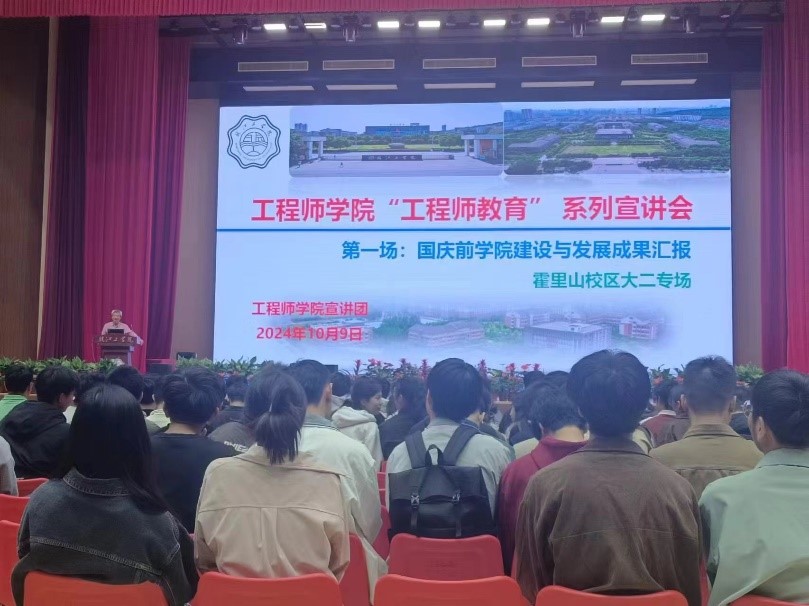 为提升我校学生对工程师职业的认知,帮助他们深入了解行业发展前景和技能需求,明确职业规划,同时通过介绍校企合作模式和创新教育理念,激发学生的实践能力与创新意识,促进校企深度融合,增强学生就业竞争力,为未来工程师人才的培养奠定坚实基础。依据市人社局统一部署,2024年10月9日和10晚分别在霍里山校区体育馆和郑蒲港校区操场成功举办了“工程师教育”系列宣讲会的第一讲:2024年国庆前工程师学院建设进展。宣讲团由工程师学院院长朱昌平担任团长,副院长黄昭明、副院长助理陶彬彬及各创新工程实践实验室负责同学参与,面向工程师学院19个试点专业大一至大四学生进行了四场专场宣讲,吸引了近万名学生参加。