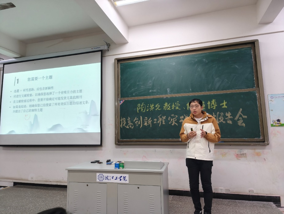 2025年3月20日晚,创新与产业工程师学院在弘思楼307室举办了“提高创新工程实践能力教授博士报告会”,朱昌平院长主持会议,陶洪久教授和仲超博士与创新工程实践团队师生100余人参加了会议。