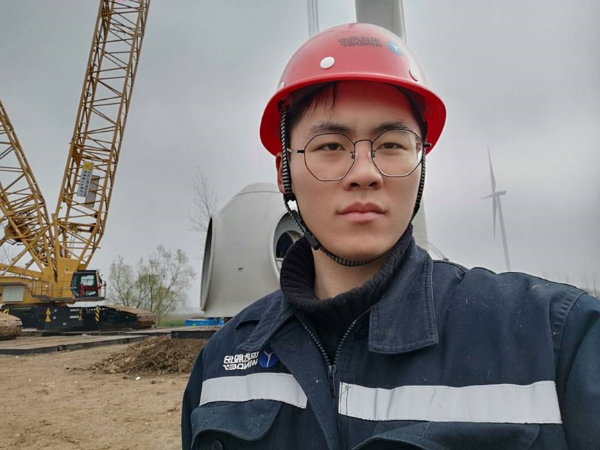 原来,他是我校2017级机械工程学院机械工程专业学生何永军。目前,何永军就职于浙江运达风电股份有限公司,实习期间在安徽亳州执行任务,也就是在这里拍摄了这条视频。他的工作是负责现场的技术交底和技术指导,后期将从事风机的运营工作。
