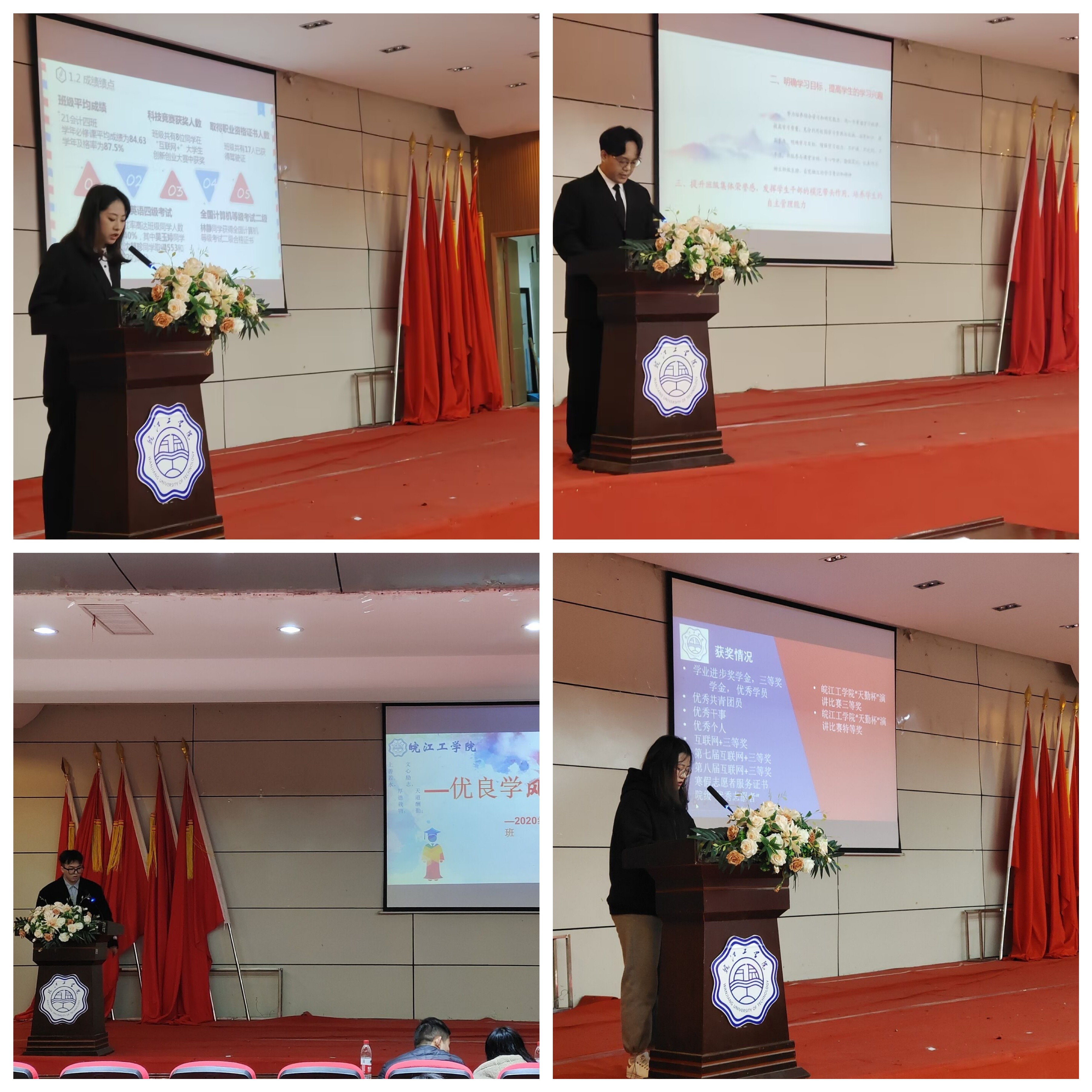 参加答辩的15个班级是通过前一学年度学风建设申报创建、班级自评、学院推荐、学校审核等流程筛选出来。参选班级从本班级在学风建设方面所做的工作以及取得的成绩,主要包括学风建设思路、具体措施、学风成效、建设亮点及下一步努力方向等五个方面进行汇报,充分展示了班级特色和班级风貌。从展示中看出,各班通过一系列学风建设活动,取得了明显成效:成立学习小组等活动,营造了良好的学习氛围,提高了同学们的学习自觉性;积极参加学科竞赛,拓宽了同学们的知识面,培养了创新精神;开展丰富有趣的课外活动,陶冶了同学们的情操。这些工作方法不仅使大家的学习成绩得到了提高,也体现了班集体的团结友爱、共同进步的精神。