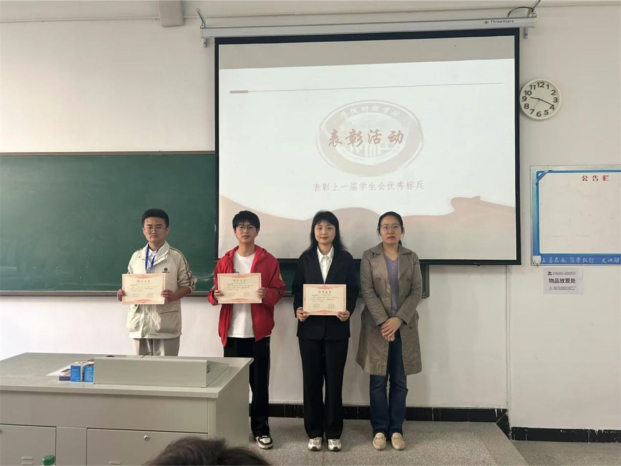 大会表彰了第四届学生会优秀工作标兵,他们分别是主席团周照、部长级刘少宏、干事张天赐,刘玉婕老师为三位优秀工作标兵颁发奖状。感谢他们一年来的辛苦付出,祝愿他们以学生会为基石,策马扬帆,未来更加璀璨光明。