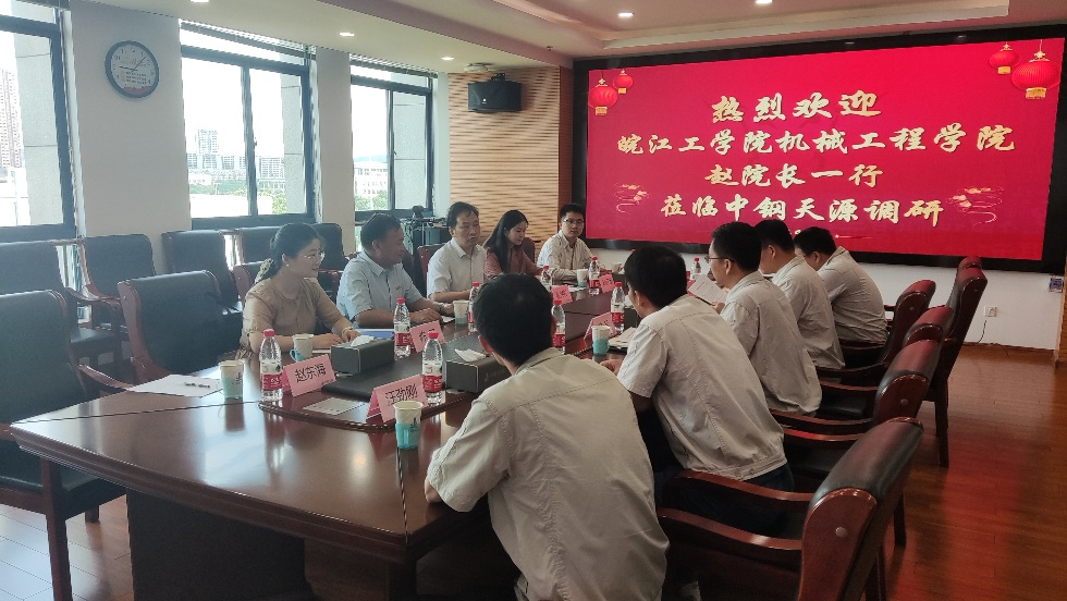 本次活动由机械工程专业负责人张兴权主持。首先由机械工程学院赵院长向中钢天源各领导介绍机械工程专业办学基本情况,简明阐述此次调研的目的;随后,中钢天源负责人简单介绍了企业基本情况,并对皖江工学院机械工程学院的到访表示诚挚的欢迎。