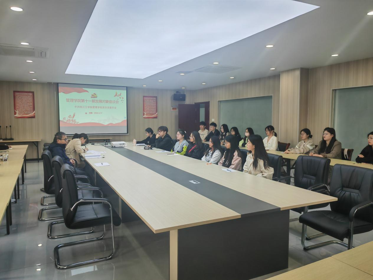2024年4月17日下午,管理学院党总支在会议室进行第十一期党员发展对象集中座谈,管理学院党总支书记宋洪生、党政办主任李欢、党总支委员会成员陈娟娟、吴淑梅老师、学院本批次共计35名学生发展和1名教师发展对象参加,座谈会由李欢老师主持。
