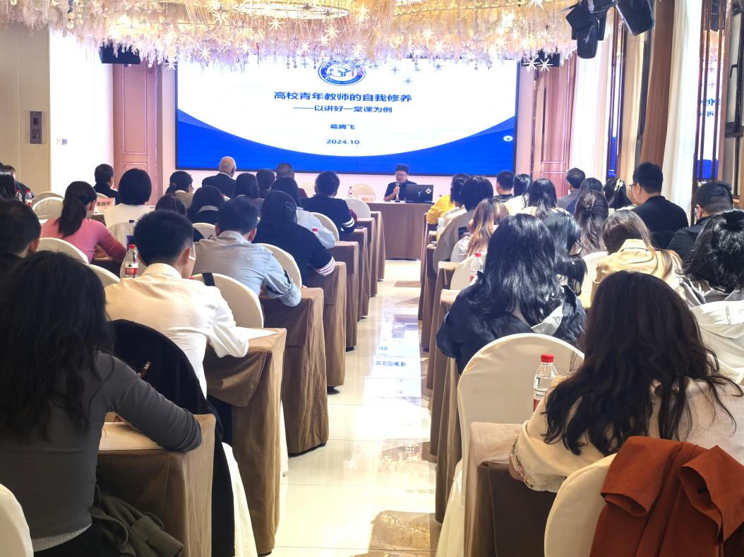第一场主题讲座由马鞍山学院葛腾飞教授主讲,他围绕“高校青年教师的自我修养——以上好一门课为例”这一主题,从师德师风、教学理念、科研能力等多个角度出发,分享了自己多年的教学经验和心得。葛教授强调,青年教师应以学生为中心,不断在教学实践中更新教学内容和方法,同时要有“甘做分母”的课题申报心态,积极申报各类科研课题和竞赛,实现”教与学”的互促与提升。