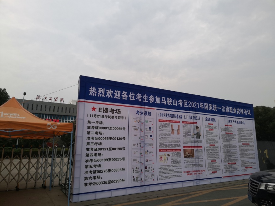 11月21日上午, 2021年国家统一法律职业资格考试马鞍山考区皖江工学院考点顺利完成考试组织工作。本阶段为主观题考试阶段,考试共设1批次,6个考场,390人参加考试。