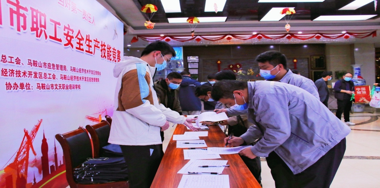 为深入学习贯彻党的二十大精神,落实习近平新时代中国特色社会主义思想,深入开展“我为企业做服务”活动,努力培养职工安全技能人才,进一步调动广大职工在推进马鞍山高质量发展中的积极性、主动性、创造性,加快我市安全生产领域技能人才选拔,加强产业工人队伍建设和素质提升,促进企业之间安全生产管理经验的交流,由马鞍山市总工会、马鞍山市应急管理局和马鞍山经济技术开发区管委会共同主办,马鞍山市经济技术开发区总工会、马鞍山市经济技术开发区应急管理局承办,我校协办的“2022年全市职工安全生产技能大赛”于11月19日上午在我校拉开帷幕,全市共有26家单位、78位职工报名参赛。