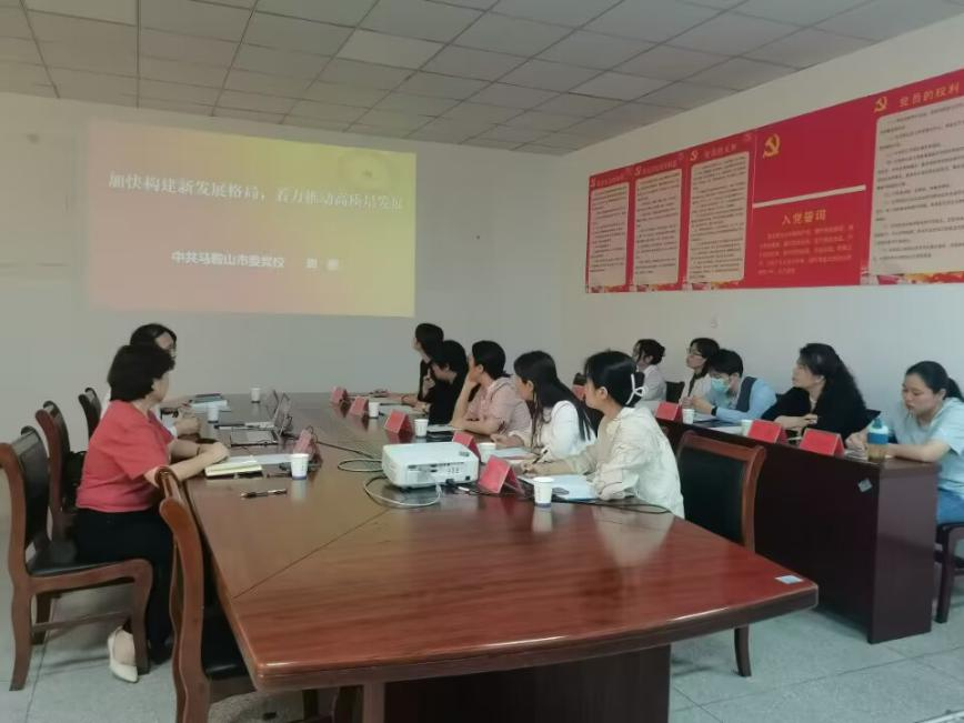 5月16日,马克思主义学院邀请中共马鞍山市委党校马克思主义基本理论教研室主任、教授、博士、市委宣讲团成员、省委讲师团基层宣讲专家,首批马鞍山市学术和技术带头人周鹏教授,开展《加快构建新发展格局,着力推动高质量发展——深入学习贯彻党的二十大精神》学术讲座,马克思主义学院常务副院长刘双主持,全体教师参加。