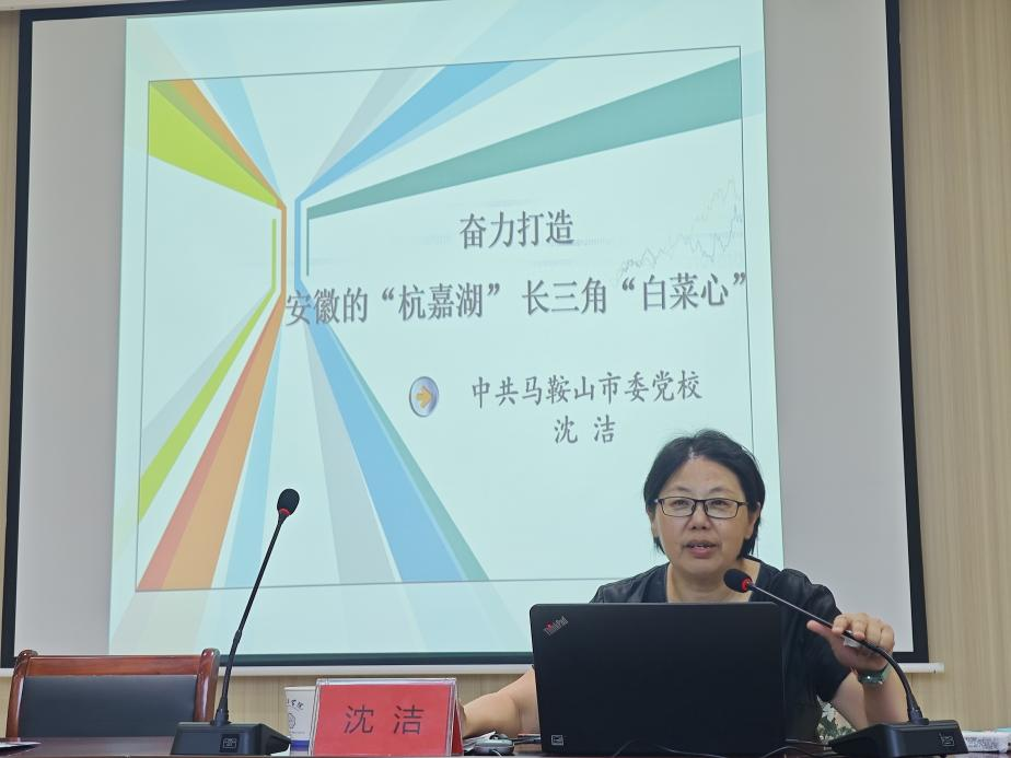 7月5日上午,马克思主义学院邀请市人大代表、市委党校专家沈洁在马院多功能会议室开展“奋力打造安徽的“杭嘉湖”,长三角的“白菜心””专题讲座。马克思主义学院党总支书记、常务副院长刘双,副院长胡耀东,各教研室主任及全体思政课教师参加。会议由刘双主持。