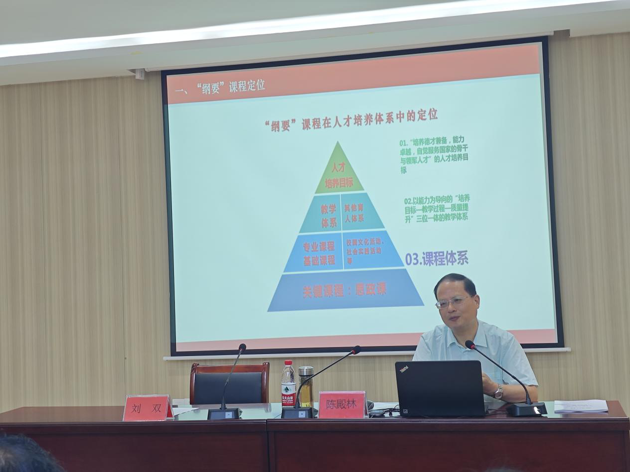 7月7日,合肥工业大学博士生导师、合肥工业大学马克思主义理论博士点“中国近现代史基本问题研究”学科带头人、马克思主义学院学术委员会主任,国家社科基金通讯评审专家、教育部社科规划项目、安徽省社科规划项目评审专家陈殿林教授,在马克思主义学院多功能会议室为我院教师开展主题讲座,马克思主义学院总支书记、常务副院长刘双,副院长胡耀东,各教研室主任及全体思政课教师参加。会议由刘双主持。