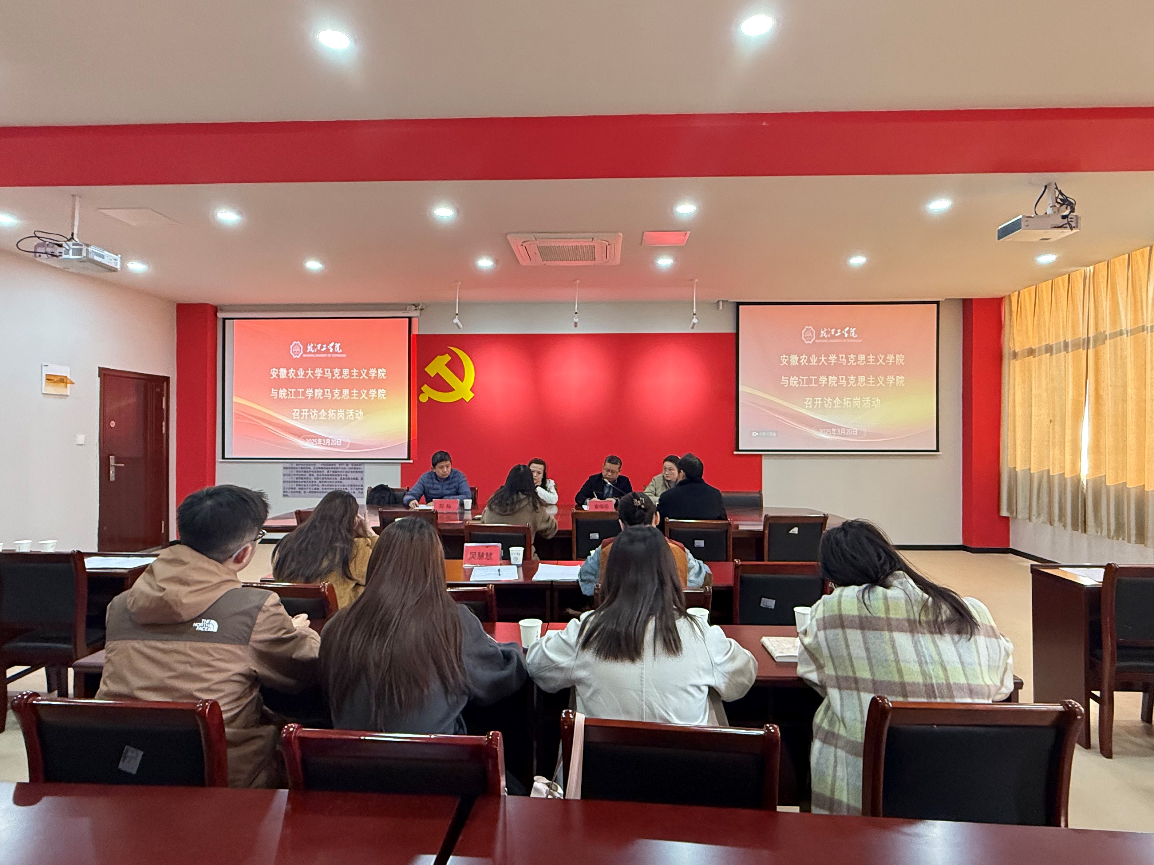 座谈会上,刘双首先对安徽农业大学马克思主义学院苏洁院长一行的到来表示热烈欢迎,并简要介绍了皖江工学院以及马克思主义学院在思政课教学运行、师资队伍建设等方面的情况。苏洁高度评价了皖江工学院马克思主义学院在思政课教学改革方面取得的成就。她表示,希望通过此次交流,双方能够进一步加强合作,共同推动思政课教育教学的高质量发展。随后,双方围绕思政课课程建设、教学方法创新、科研项目合作、师资队伍建设等议题展开了深入讨论。与会教师代表积极发言,分享了各自在教学实践中的经验与思考,并就如何提升思政课的吸引力和实效性、如何加强马克思主义理论研究与传播等问题进行了热烈探讨。