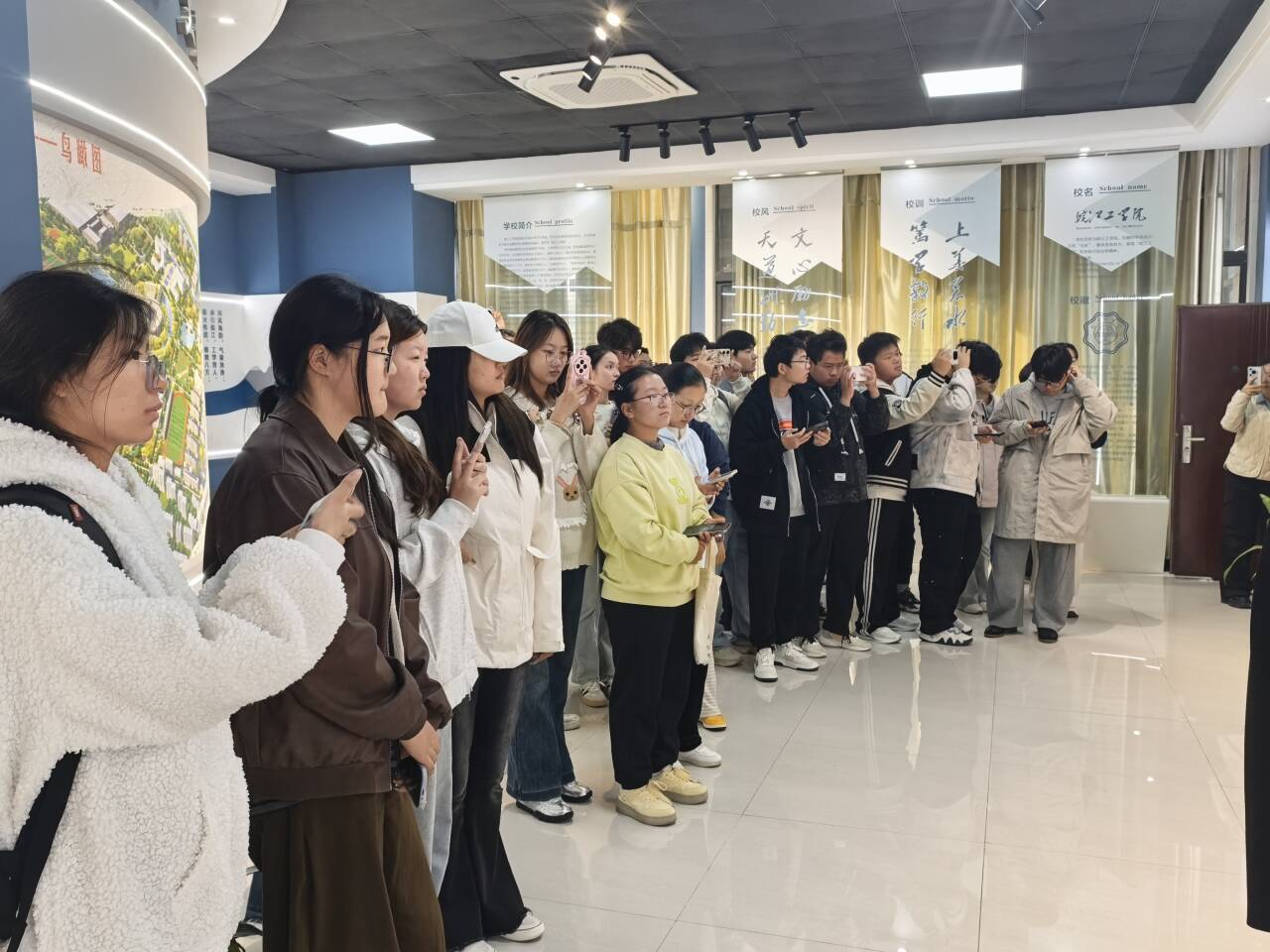 在校史馆和水情教育基地的实践教学中,课程组教师以二级教学单位为单位,分批次组织教学。教师们既担任讲解员,又作为安全第一责任人,带领学生参观学习,并指导学生讲解员共同完成教学任务,确保了教学有序开展。