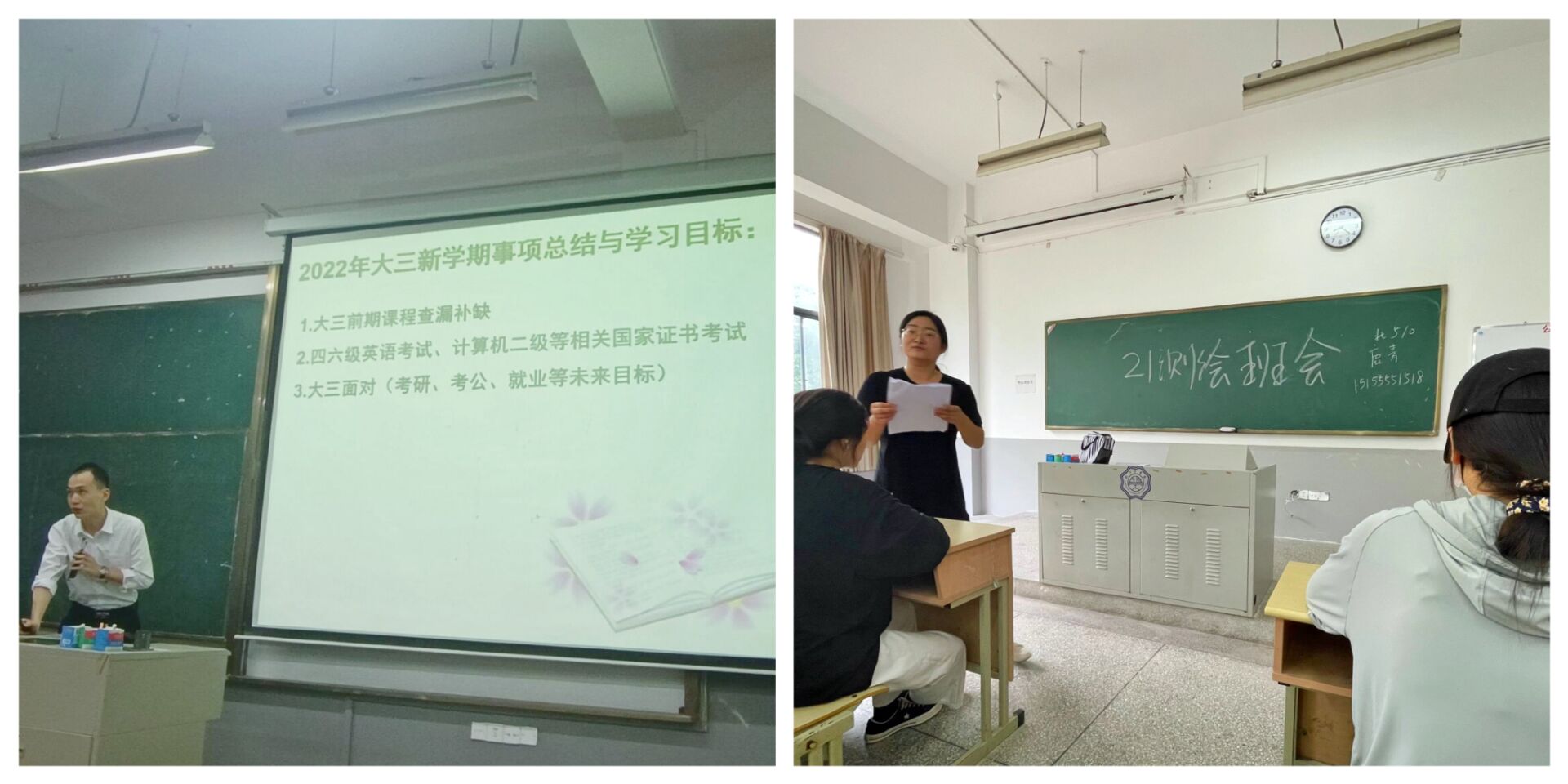 会议伊始,辅导员首先说明学校防疫管理方面的工作安排,要求返校后服从管理进行“三天两检”,严格落实晨午晚检及因病缺勤记录,同时也强调非必要不外出,尤其结合近期疫情多点突发的形势,做好学生流入流出地调查,不欺瞒,实报备。其次,在学风建设方面,各专业根据上学期考试成绩分析,提醒同学们要对上学期学业成绩进行总结,对挂科的同学尤其是强调要做好补考复习准备。同时,各年级根据各自专业及就读年级的不同,分析现状,提出新学期的目标规划,对新学期已是大四的学生重点强调了考研复习、就业创业及学业预警相关工作;三年级则应着手未来规划,结合自身情况,选择切合实际的方向,并应对未来充满信心;二年级的学风建设尤为重要,这是打基础的时间,尤其是专业基础,同学们应围绕学业展开自己的二年级学习生活。最后,辅导员也提醒同学们身体是一切的基础,同学们也要不断加强体育锻炼,提高自身免疫力,对秋季学期的到来要做好保暖和自我防护,谨防疾病。