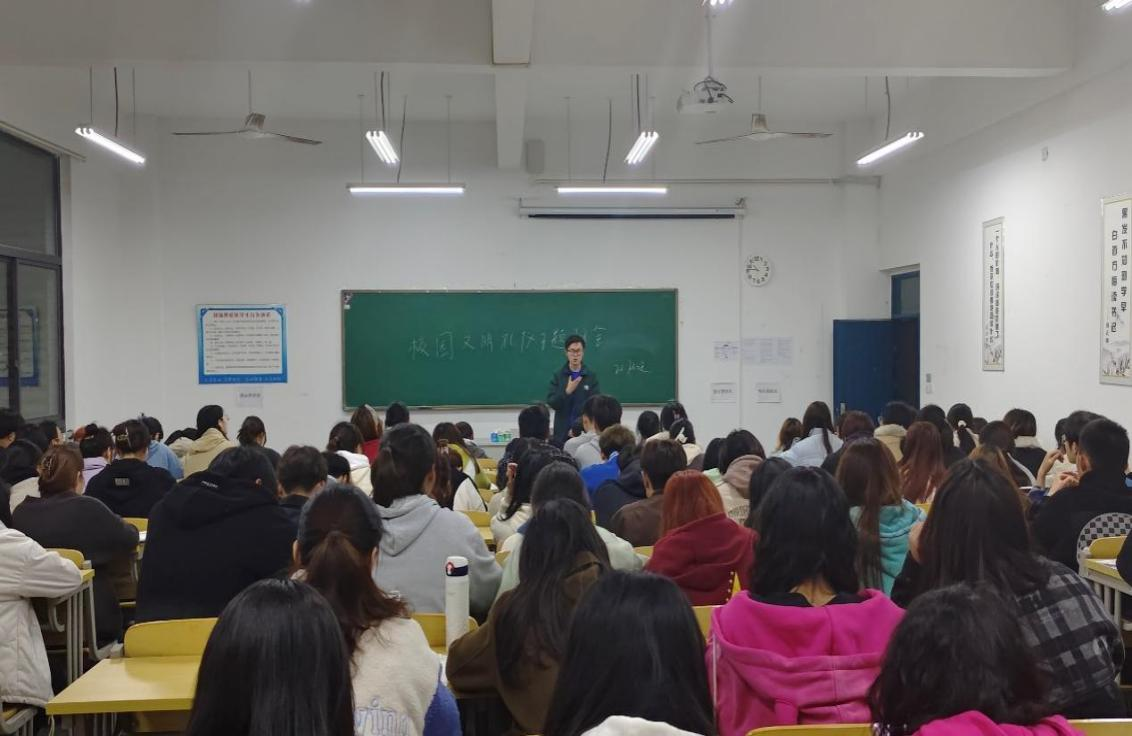 20级辅导员程楠楠老师在班会中强调大学期间提高自身的综合素质至关重要,未来的就业升学并不是完全依靠专业知识,更重要的是在大学期间培养个人综合素质和能力,提高自身的就业竞争力,找到个人的闪光点。