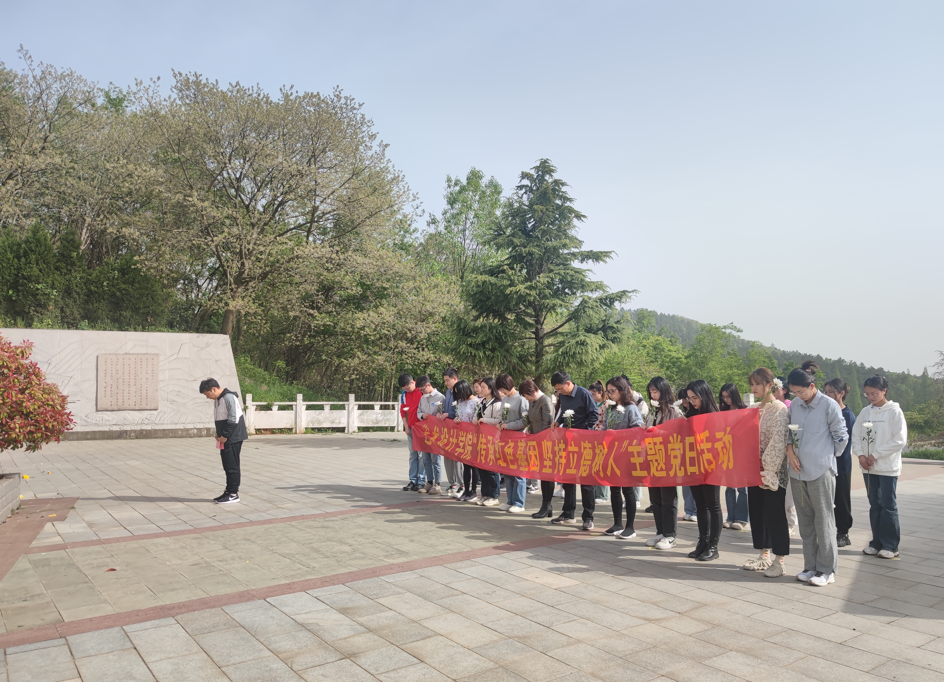 为弘扬爱国主义,培养家国情怀,缅怀为祖国解放和人民安宁而英勇牺牲的烈士,2023年4月12日下午,艺术与设计学院在党总支书记张亚梅同志、院长伍旭坤同志的带领下,全体党员及教师赴马鞍山市博望区横山抗日英雄纪念碑开展“传承红色基因,坚持立德树人”主题党日活动,激励教师从英烈事迹和崇高精神中汲取奋进力量,勇担时代使命。