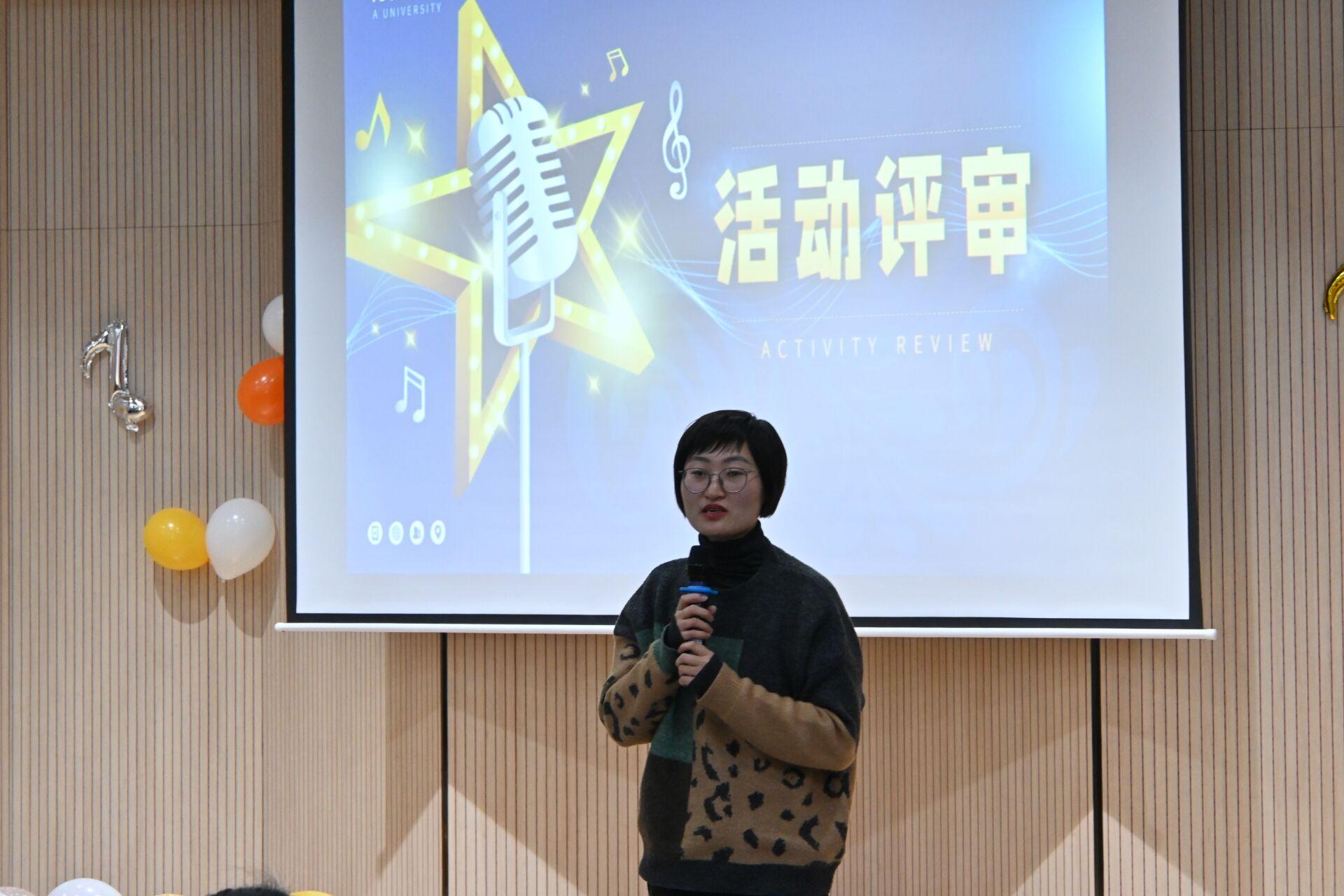 程楠楠副书记对活动进行了点评和总结,她首先对积极参与比赛的同学表示赞许,对精心组织比赛的学生组织表示感谢。接着她从曲目选择、演唱技巧、舞台表现等方面对参赛选手进行逐一点评,并鼓励同学们保持积极向上的生活态度,希望青年学生在展现才华,锻炼能力的同时,牢记使命,绽放青春!