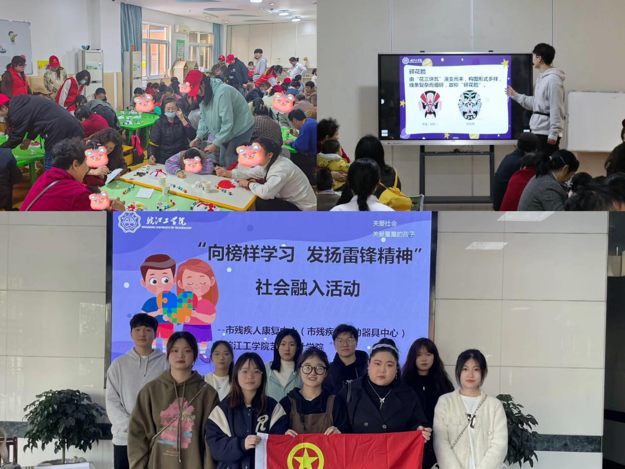 3月22日上午,艺术设计学院党总支副书记程楠楠、分团委书记刘慧带领学院十余名学生志愿者赴马鞍山市残疾人康复中心,开展“美育+实践”的美术教学和志愿服务活动,用艺术唤起“星星的孩子”们的童心梦。活动现场,志愿者细致地向孩子们讲述了中国京剧脸谱的绘色知识,并带领现场的家长孩子们亲自动手绘制脸谱。积极耐心的精神风貌收获了一致好评,孩子们天真烂漫的笑容和志愿者们温暖的陪伴,形成了一幅幅温馨感人的画面。