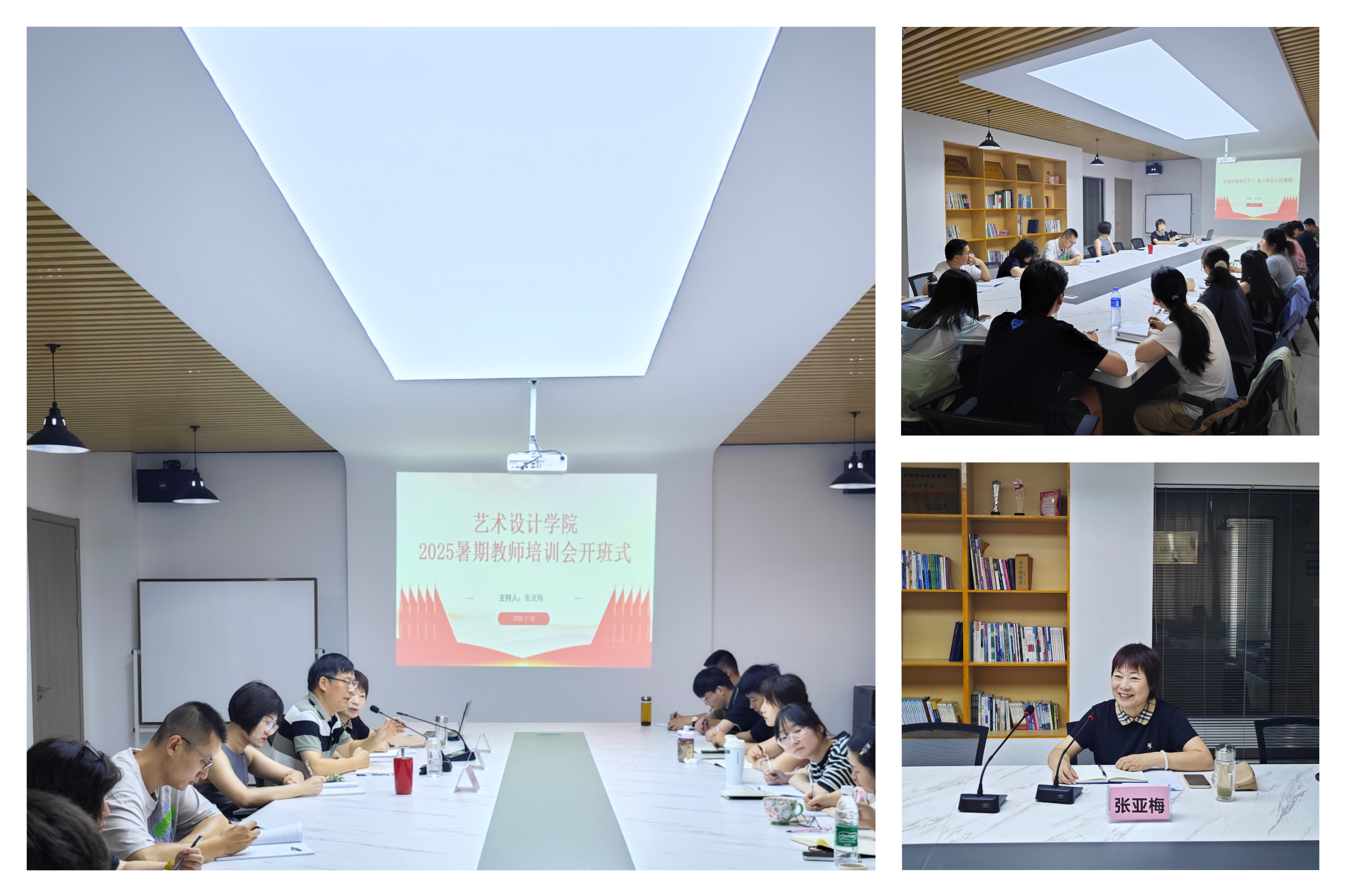 为全面提升教师综合素养,夯实教学科研能力,深化产学研协同育人,以高标准、高质量迎接教育部本科教学合格评估,2025年7月10日—8月21日,艺术设计学院开展了暑期教师岗位能力提升培训活动。本次培训紧扣艺术设计学科特色与本科教学合格评估核心要求,涵盖校史院情、师德建设、教学科研、产业实践、评估准备等多个维度,通过专题讲座、交流研讨、实地考察等多元化形式,为全院教师搭建学习提升、交流互鉴的优质平台,助力教师以更专业的能力、更饱满的状态投身新学期教育教学与评估迎检工作。​