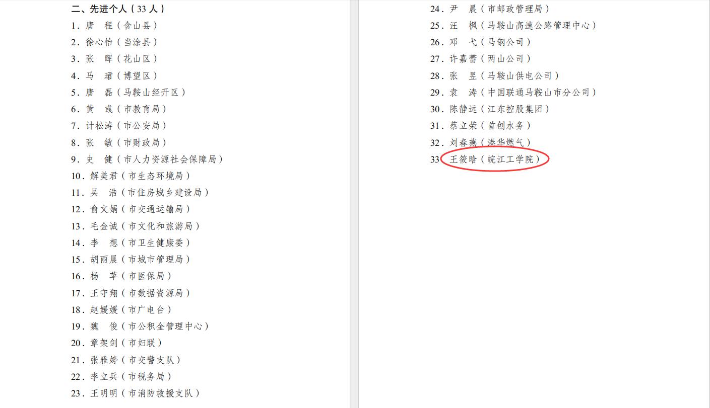 4月19日,获马鞍山市政府通知,我校在2023年度热线工作目标考核中表现出色,荣获市“2023年度热线工作先进单位”荣誉称号,王筱晗同志荣获“先进个人”称号。