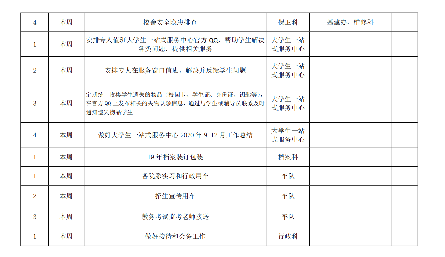 皖江工学院院务部第二十周工作安排