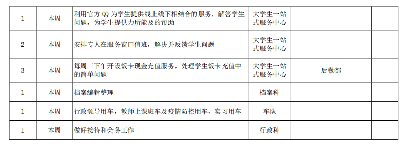 皖江工学院院务部第十七周工作安排