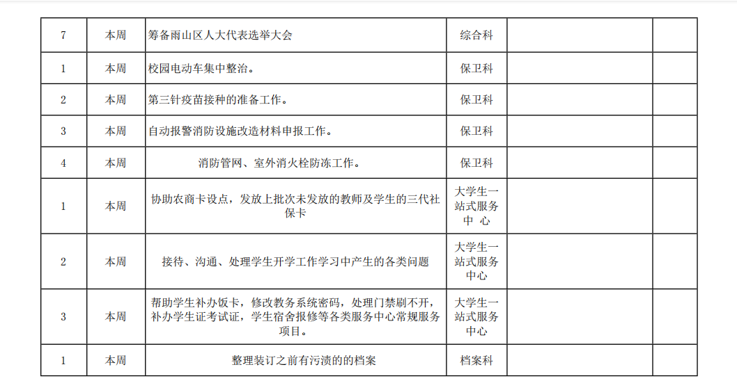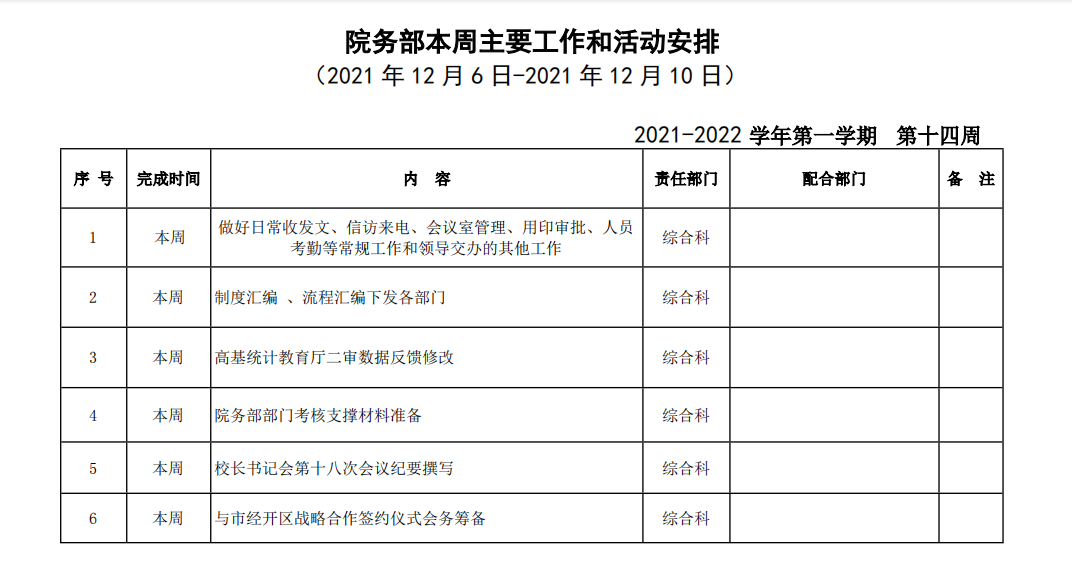 皖江工学院院务部第十四周工作安排