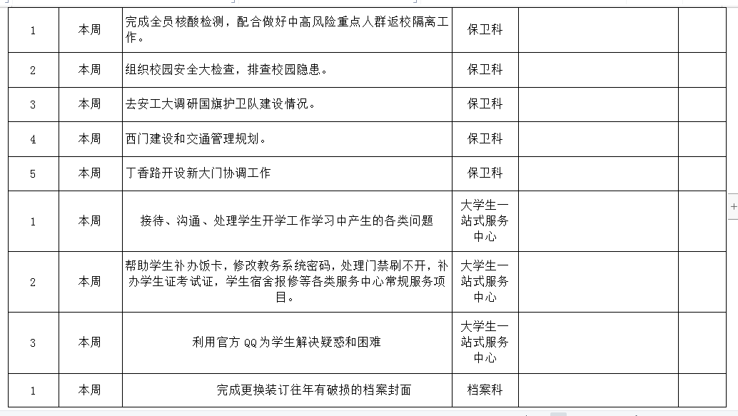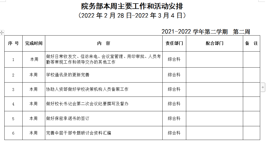 皖江工学院院务部第二周工作安排