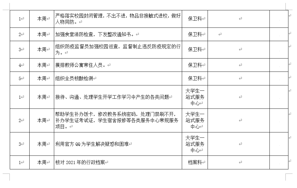 皖江工学院院务部第五周工作安排