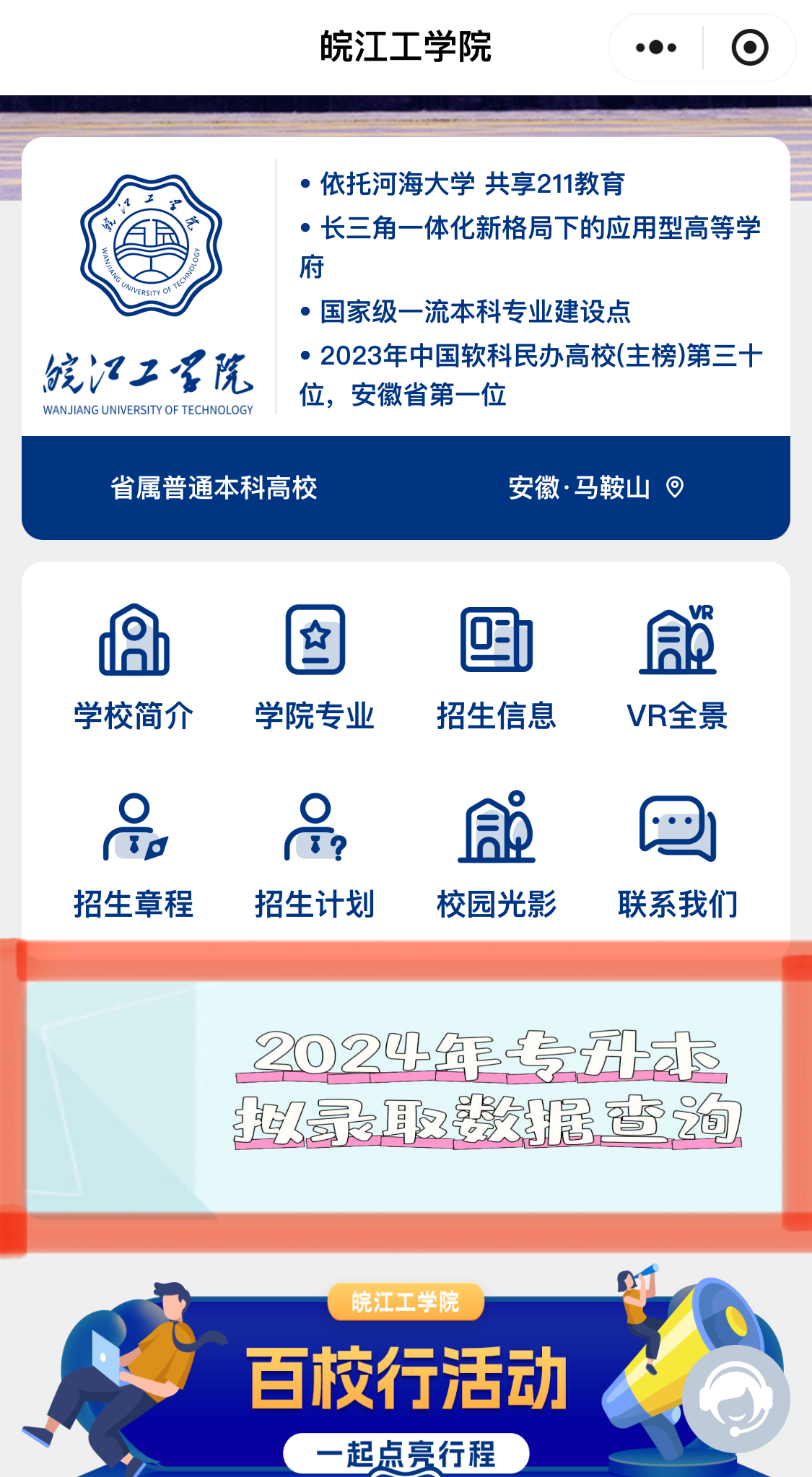 关于皖江工学院2024年专升本一志愿拟录取查询的通知