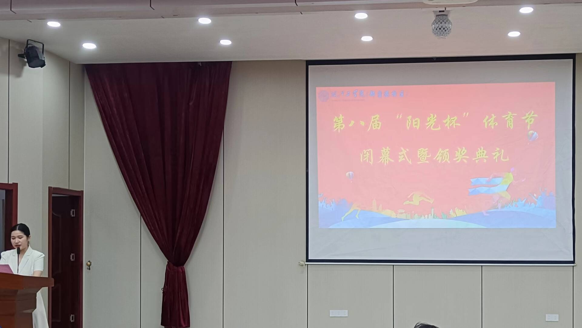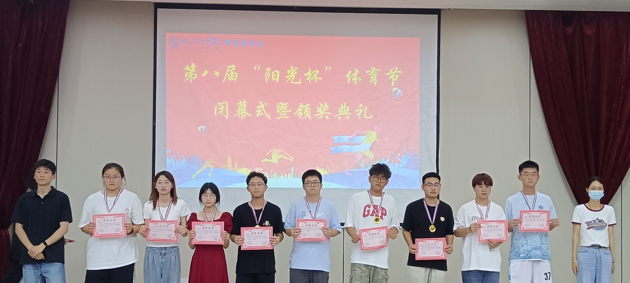 老师们为获奖队伍颁发奖杯和证书,并对同学们在体育节中的出色表现给予高度赞扬,鼓励大家继续发扬体育精神,在今后的学习和生活中不断进取。颁奖结束,由校区分团委书记王雨晴老师致闭幕词,由主持人总结发言,本次“阳光杯”体育节颁奖仪式圆满落幕。
