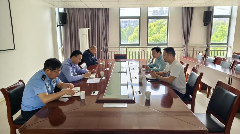 4月24日上午,郑蒲港校区副主任陈波、校区综合办潘跃林、保卫科张家骏一行赴姥桥派出所,就校区综治安全工作进行座谈。姥桥派出所教导员童明峰、副所长赵刚、孙晓祥、王恺出席座谈。