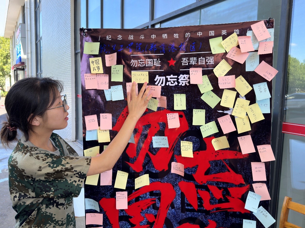 2024年9月18日是“九一八”事变93周年纪念日,为了引导广大青年学子铭记历史、缅怀先烈、珍爱和平,激发学生爱国热情,增强学生民族意识和责任感,皖江工学院郑蒲港校区开展了以“勿忘九一八,共筑中国梦”为主题的纪念活动。
